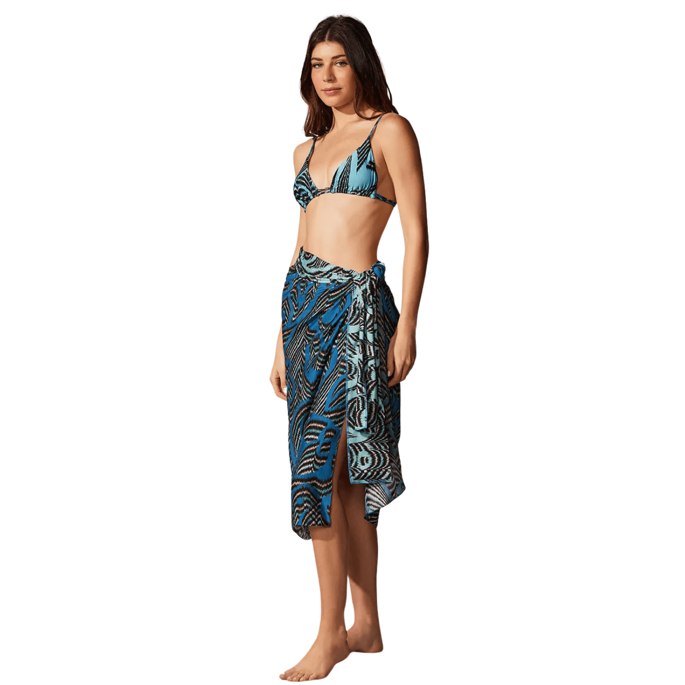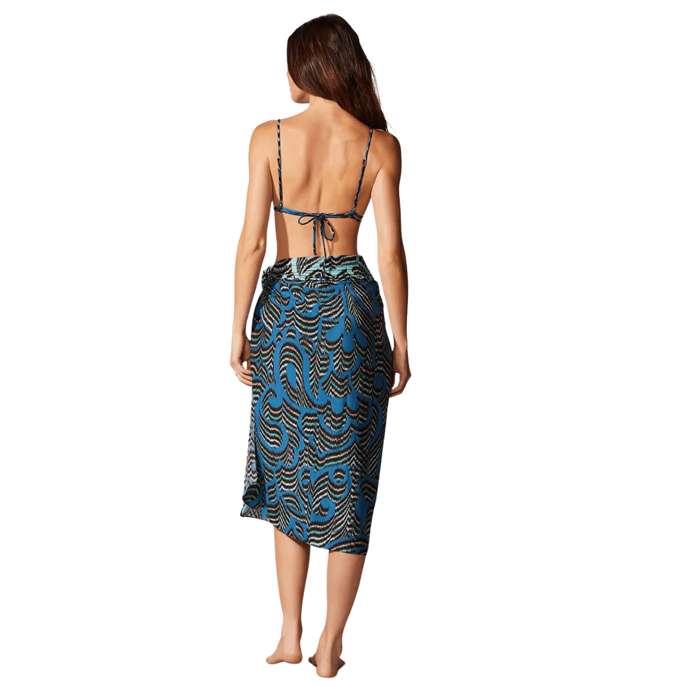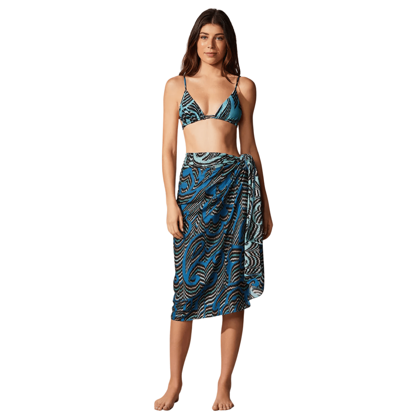 Com estampa exclusiva em tons de azul marinho e preto, inspirada nos movimentos e formas orgânicas do oceano, o pareô traduz o estilo sofisticado da Cia Marítima, referência em moda praia no Brasil. Extremamente versátil, pode ser usado de várias formas: como saia, vestido, saída de praia ou até mesmo como acessório para compor diferentes produções de verão.