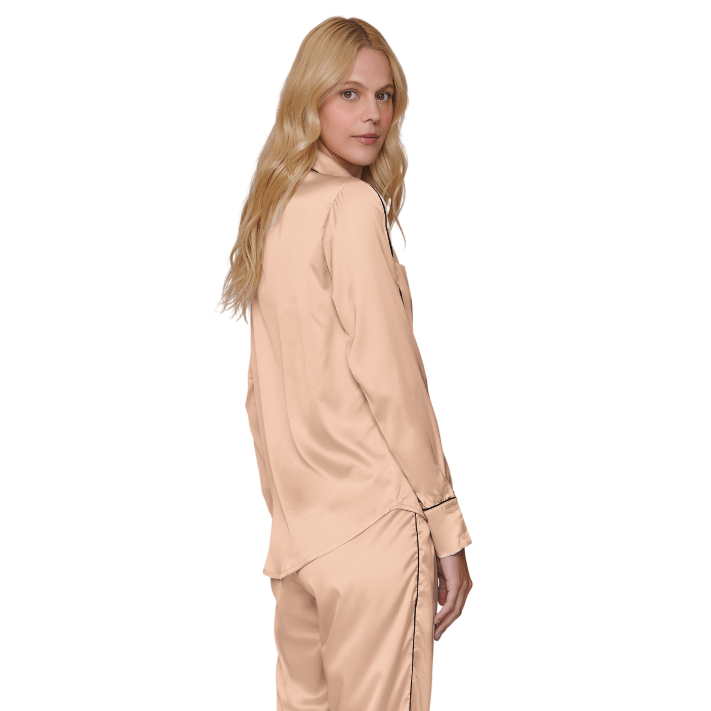 Elegância atemporal com toque de seda – Pijama Feminino Aberto Liso em Satinê