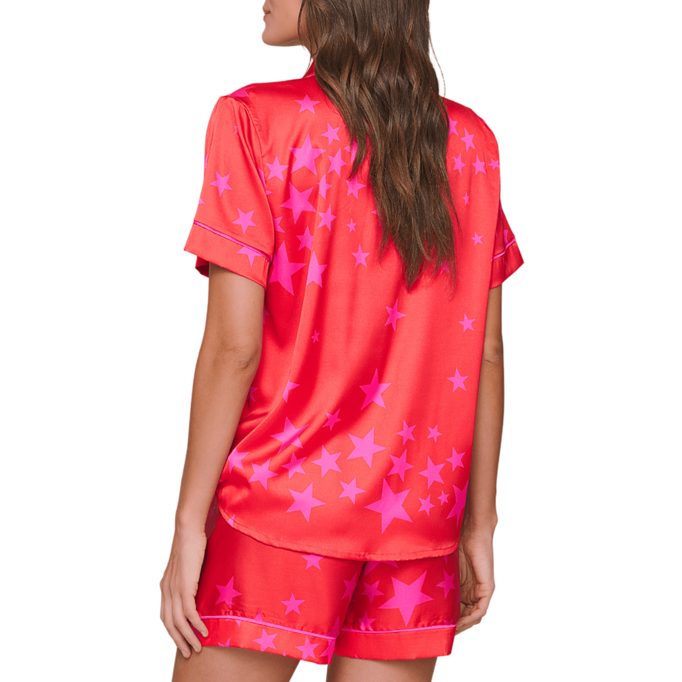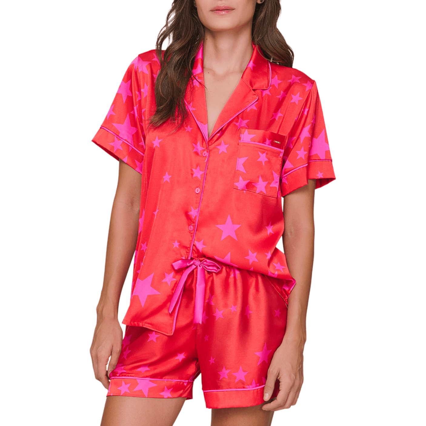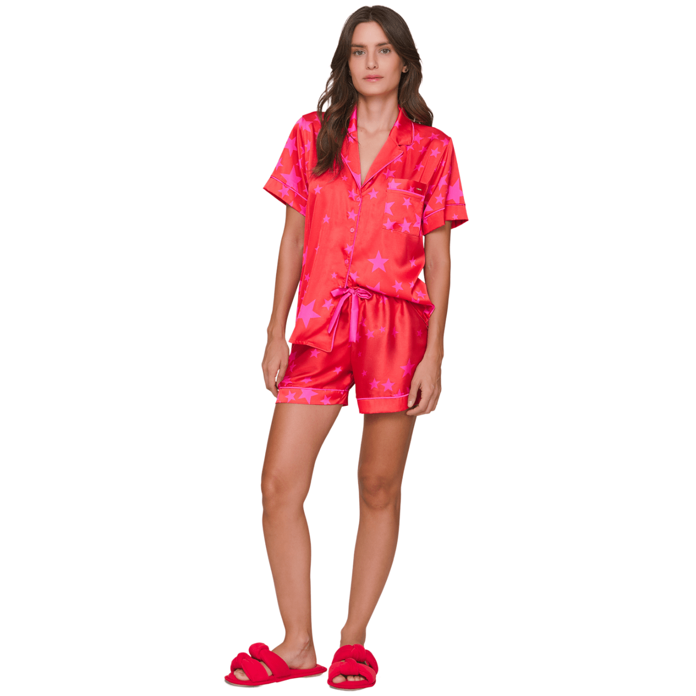 Moderno, divertido e extremamente confortável! O Pijama Aberto Curto Magic Stars da Lua Lua é perfeito para quem gosta de dormir com estilo e personalidade. Com fundo vermelho vibrante e estrelas rosa neon, ele traz um visual único, jovem e cheio de atitude para o homewear feminino.