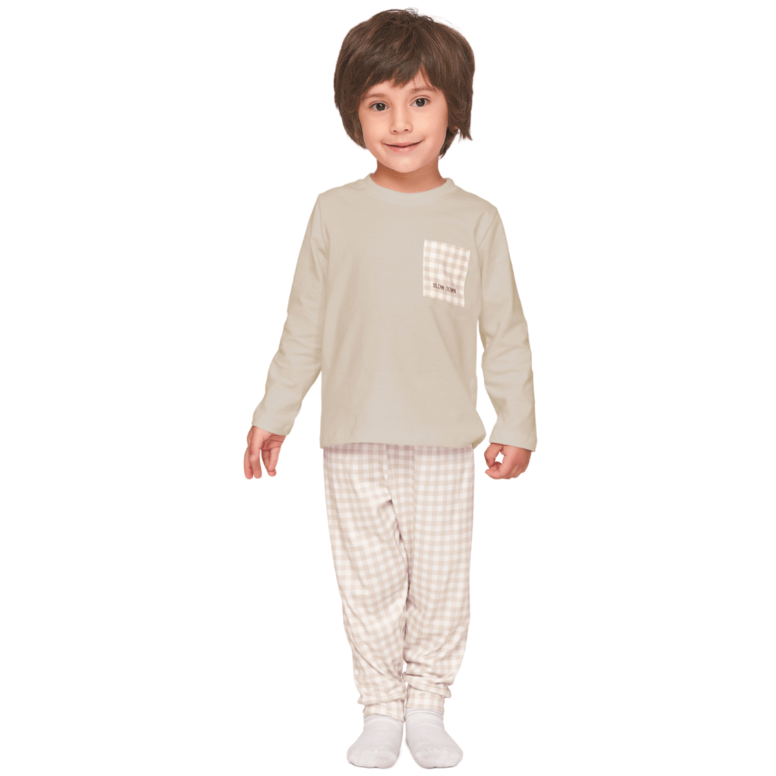 O Pijama Baby Boy Xadrez com Bordado Slow Down Lua Lua é perfeito para proporcionar noites tranquilas e cheias de conforto para os pequenos. Com um design delicado e acolhedor, ele traduz o conceito de desacelerar em cada detalhe.