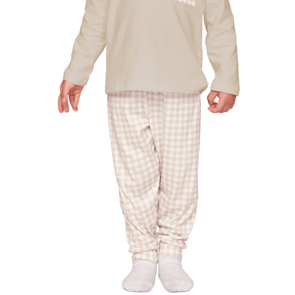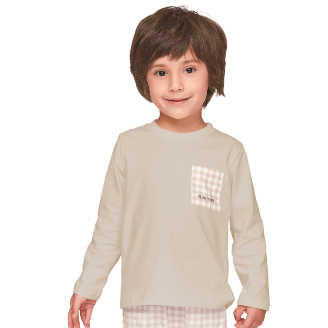 Confeccionado em tecido macio e confortável, o conjunto oferece um toque suave na pele, ideal para o descanso do bebê. A blusa de manga longa possui detalhe de bolso com estampa xadrez e bordado delicado, trazendo um charme especial à peça. Já a calça jogger em xadrez suave completa o look com aconchego e liberdade de movimento.