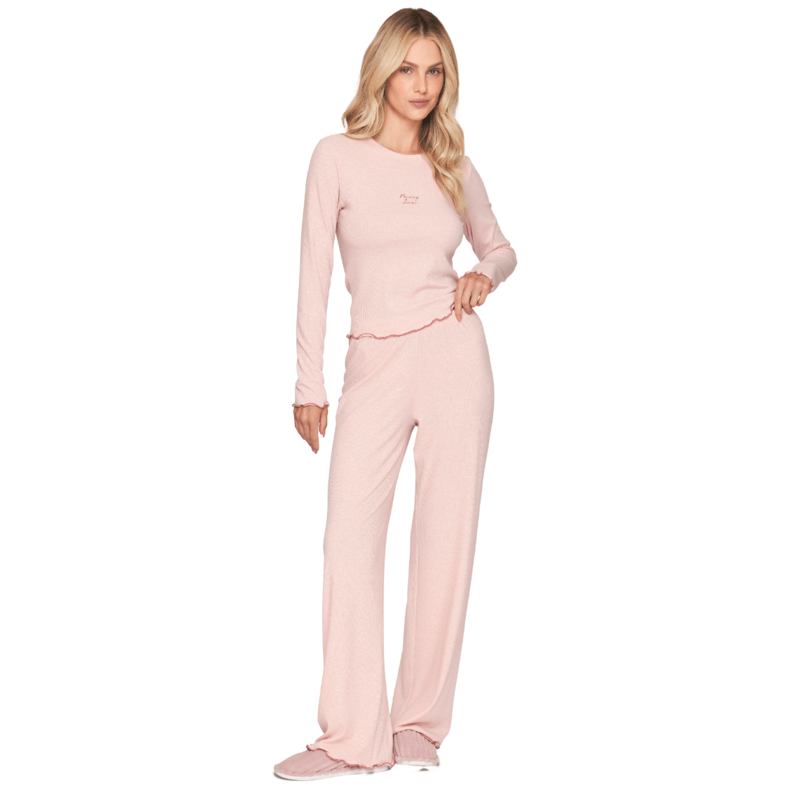 Confeccionado em tecido extremamente macio, leve e confortável, o conjunto proporciona uma sensação suave na pele, ideal para noites tranquilas e momentos relax. A blusa de manga longa possui modelagem ajustada com acabamento delicado, enquanto a calça apresenta caimento fluido e confortável, garantindo liberdade de movimento.