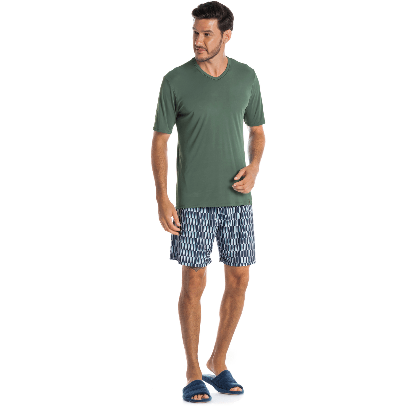 Combinando design atemporal com tecidos tecnológicos, o Pijama Masculino Curto Clóvis Tombini é a escolha ideal para homens que prezam por conforto sem abrir mão de estilo nos momentos de descanso.