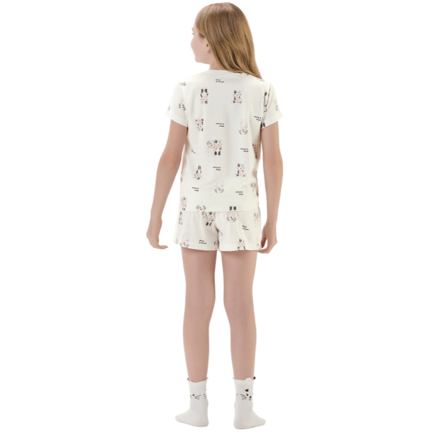 Pijama Infantil Curto Branco Cat e Dog Cute Cor com Amor