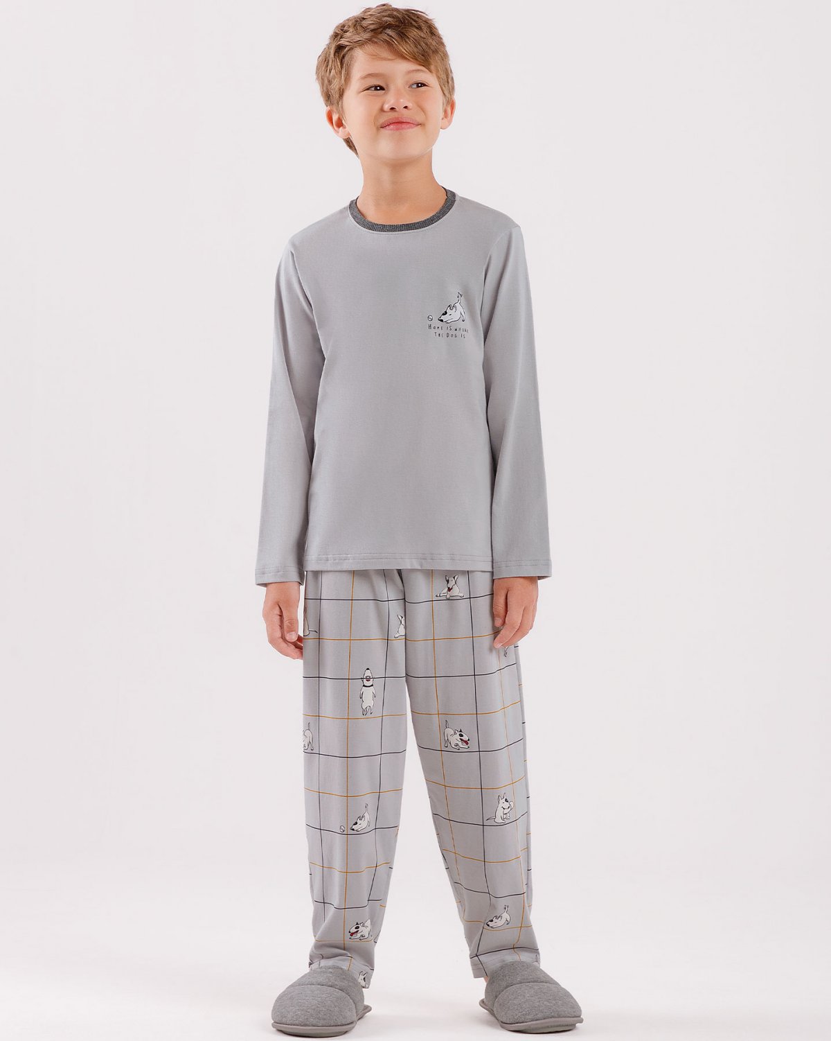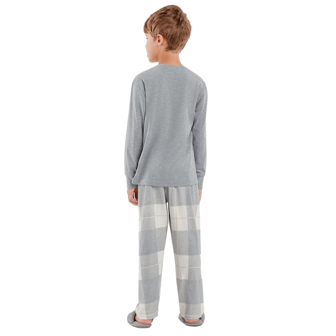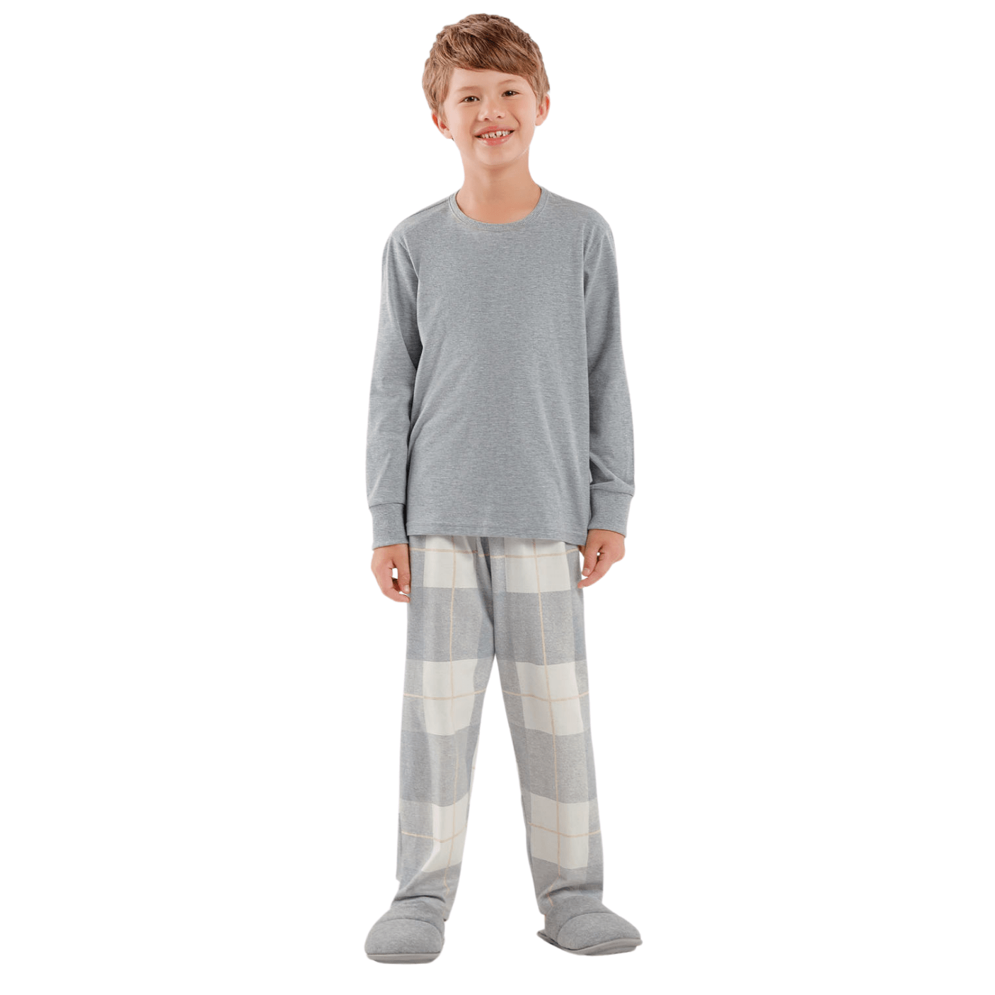 O Pijama Masculino Infantil de Manga Longa com Calça foi criado para proporcionar noites aconchegantes com um toque extra de alegria e estilo. Confeccionado em malha comfort 100% algodão, o conjunto garante um toque macio e agradável à pele, ideal para os momentos de descanso ou para relaxar com leveza durante o dia.