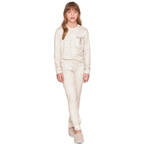 Pijama Jogger Kids Feminino Xadrez Slow Down Lua Lua