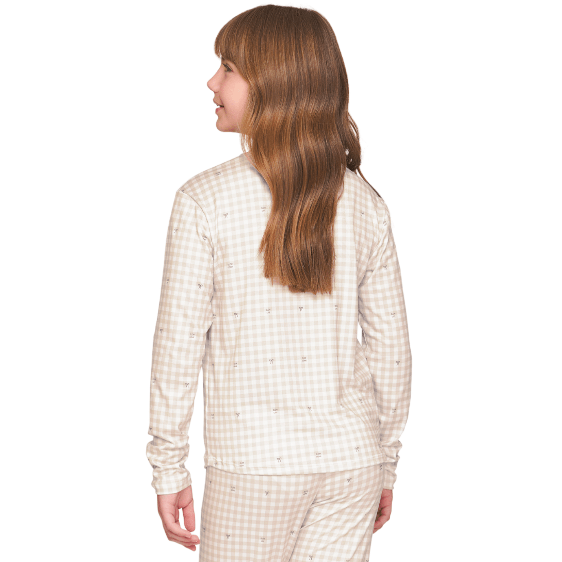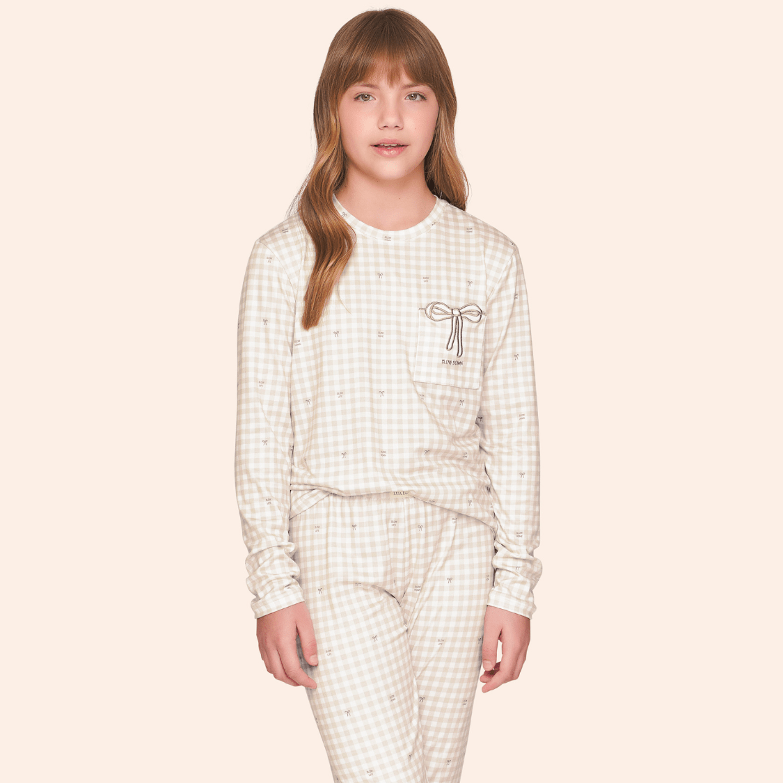 O Pijama Jogger Kids Feminino Xadrez Slow Down Lua Lua é perfeito para noites tranquilas e momentos de conforto em casa. Com um design delicado e aconchegante, ele traz a leveza do xadrez em tons suaves, criando um visual clean e encantador.