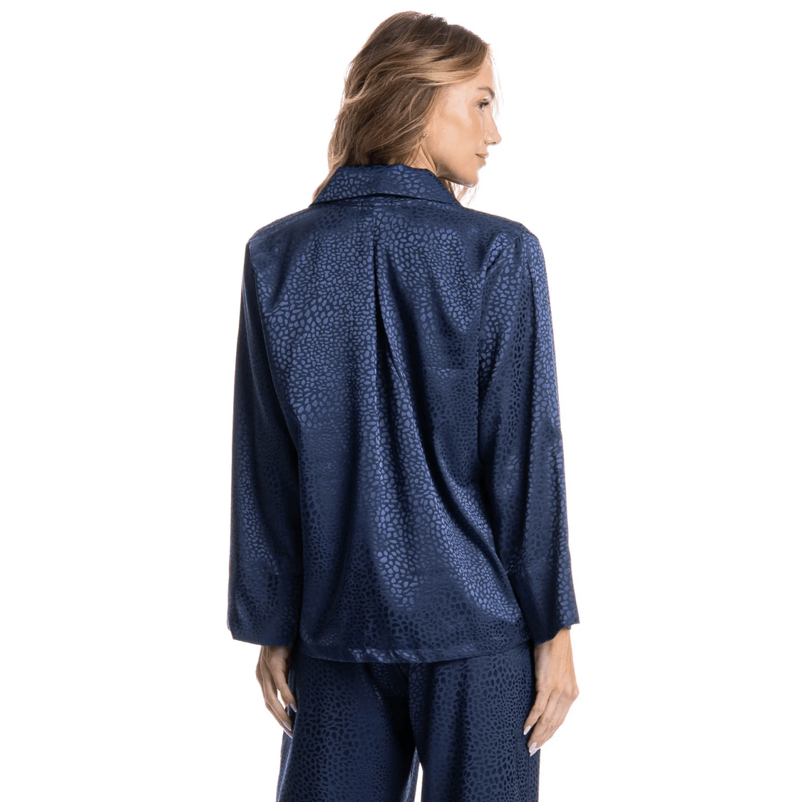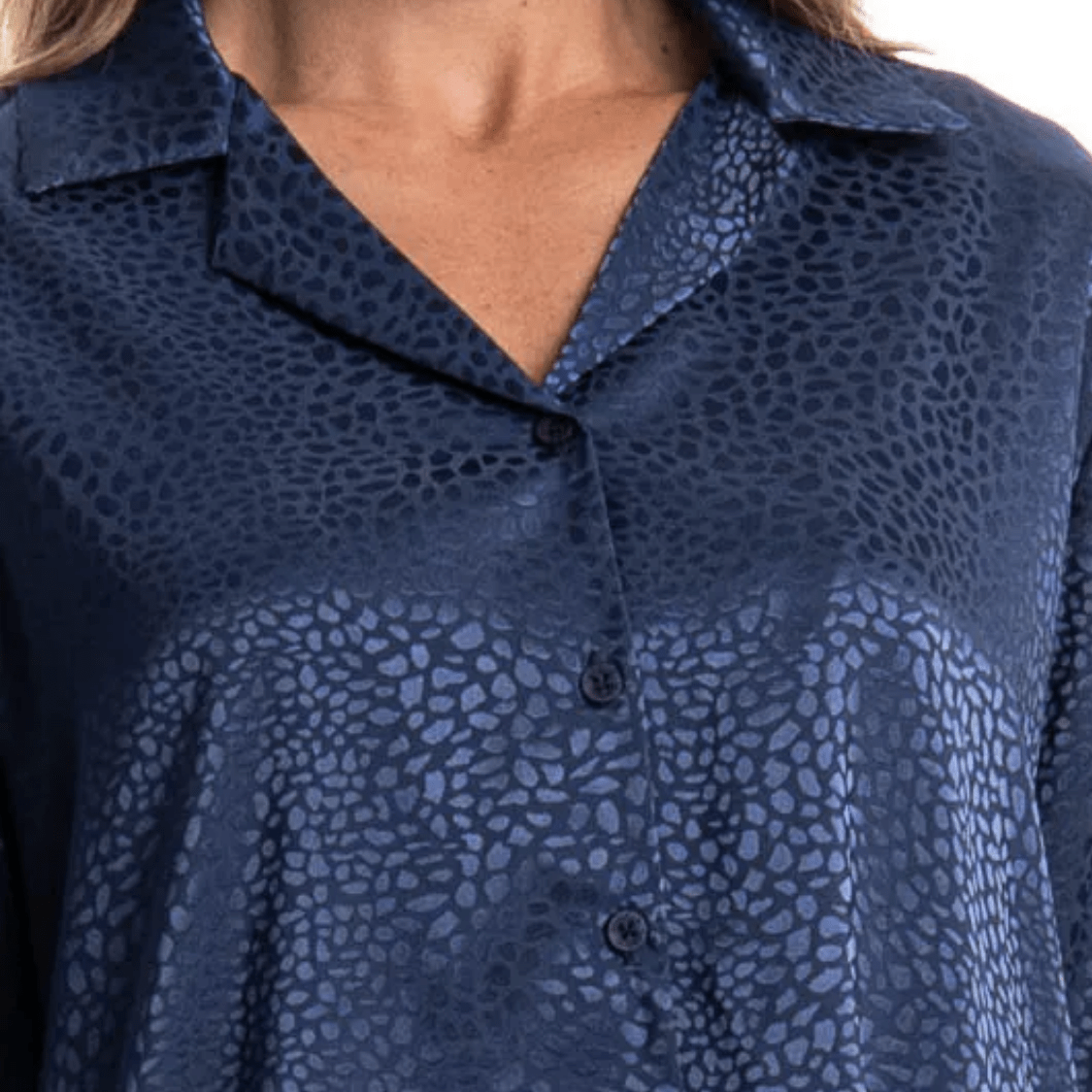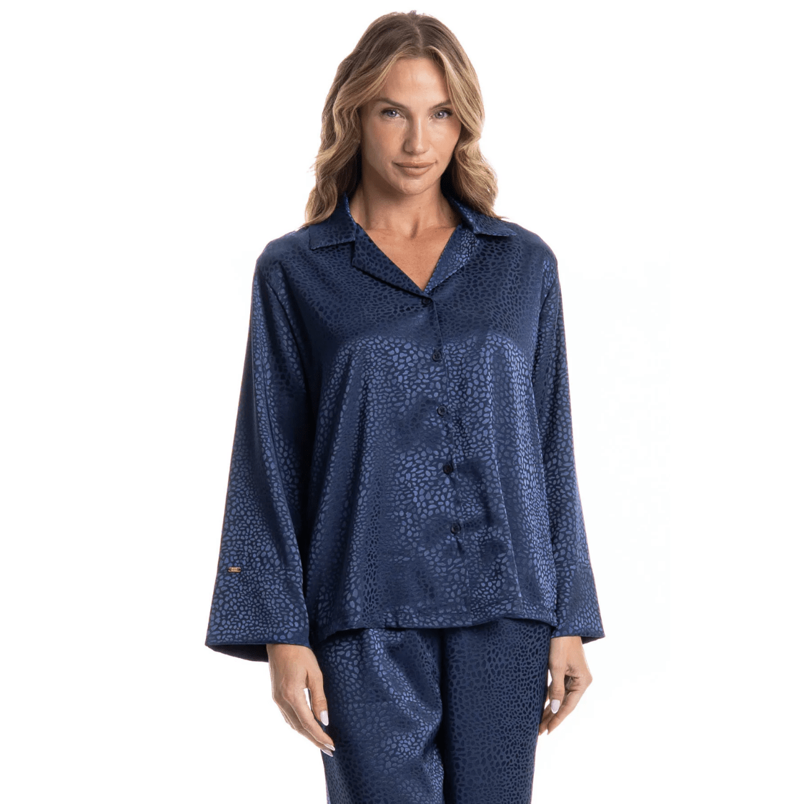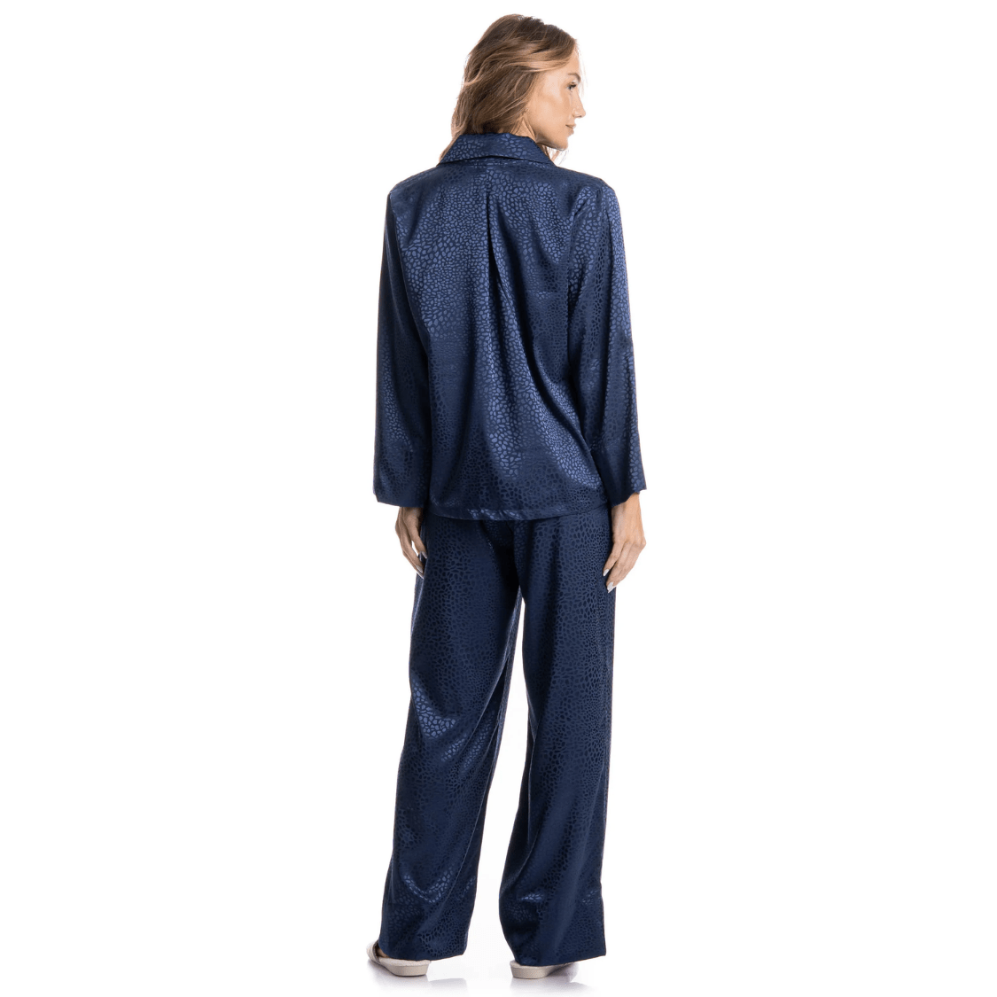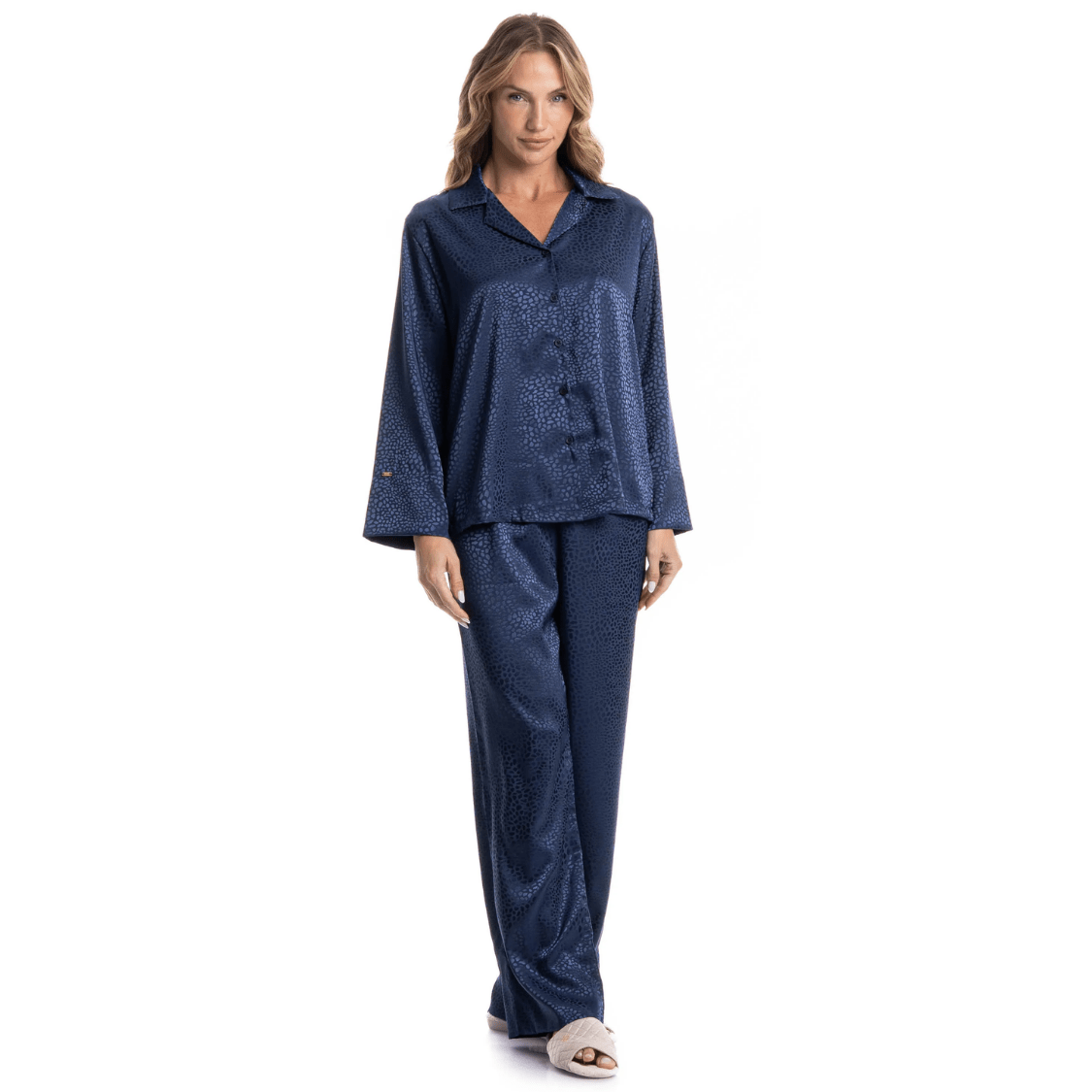 Confeccionado em tecido leve, macio e com caimento fluido, o pijama proporciona conforto absoluto e toque suave na pele, ideal para noites tranquilas.