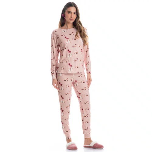 Pijama feminino longo com blusa estampada e calça divertida