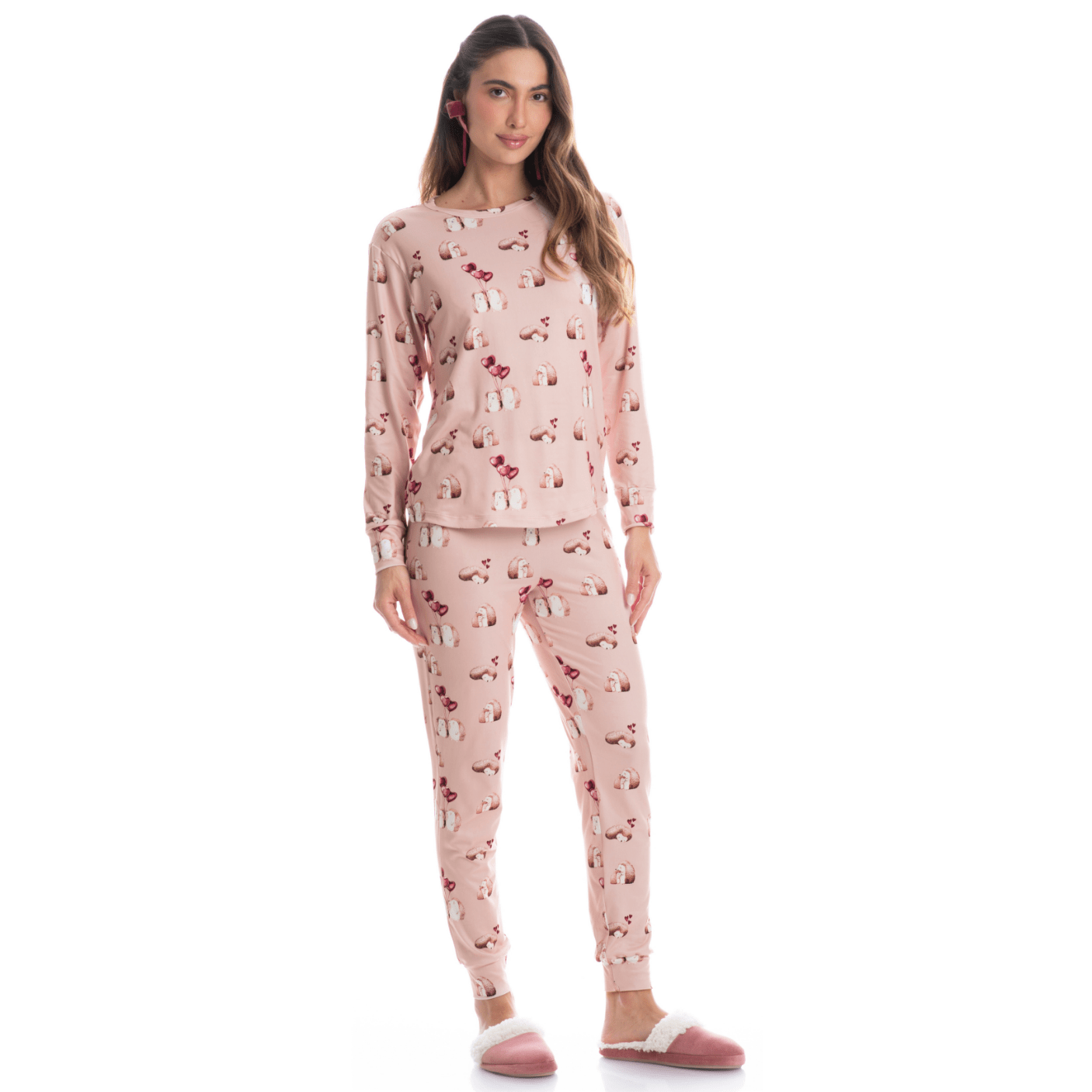 Pijama Feminino Longo Cute Love – Conforto e Estilo para as Suas Noites Mais Especiais