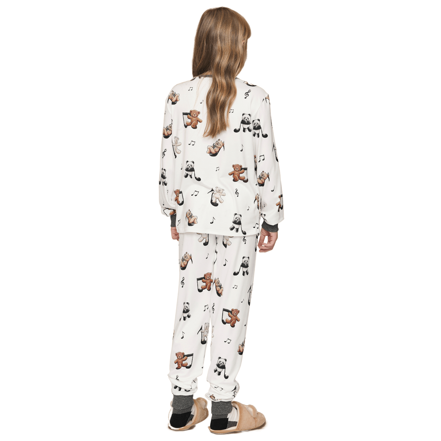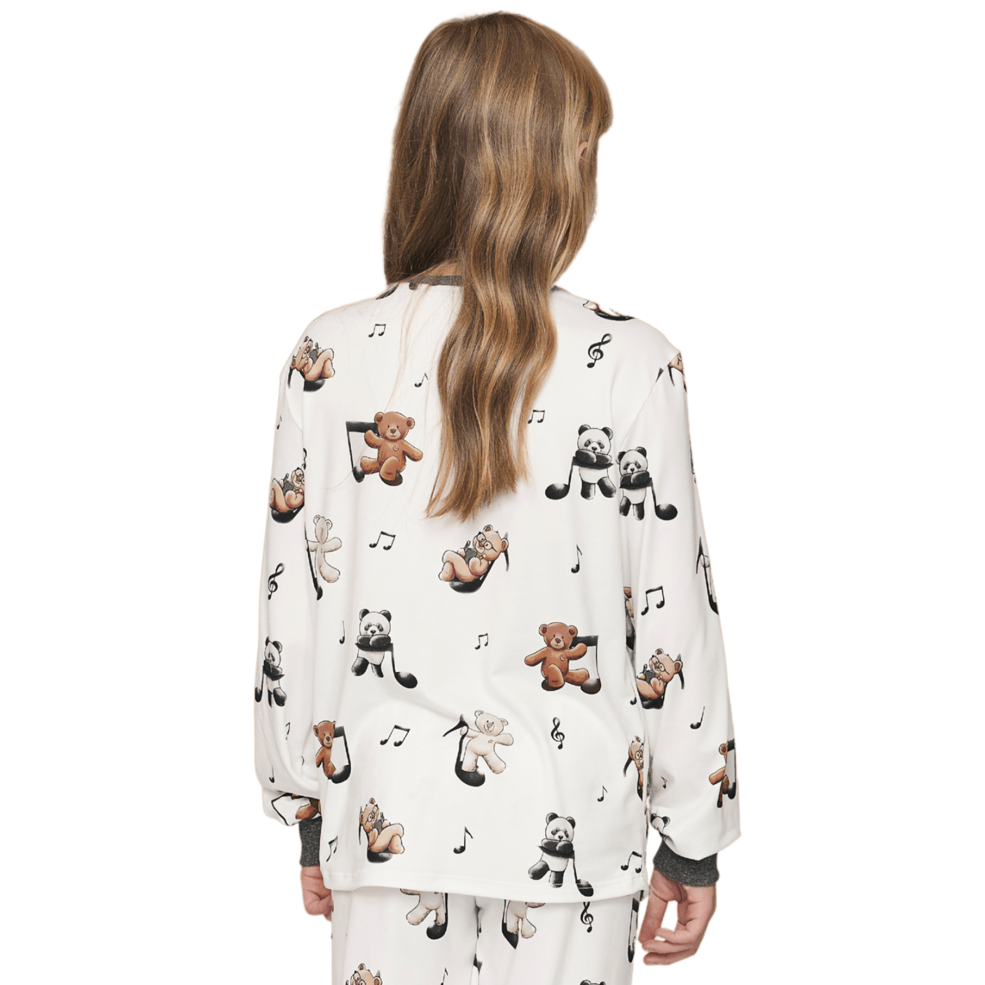 Este coordenado é perfeito para toda a família, trazendo nossos adoráveis amigos ursos em total sintonia com a nova coleção HAPPY HOUR FROM HOME, aproveitando o melhor momento de estar em casa enquanto curtem suas músicas favoritas. Como dizem as escritas nos pijamas: "É muito mais do que música, é onde me sinto confortável, é onde me sinto em casa!" Não são fofos demais, interagindo com as notas musicais.