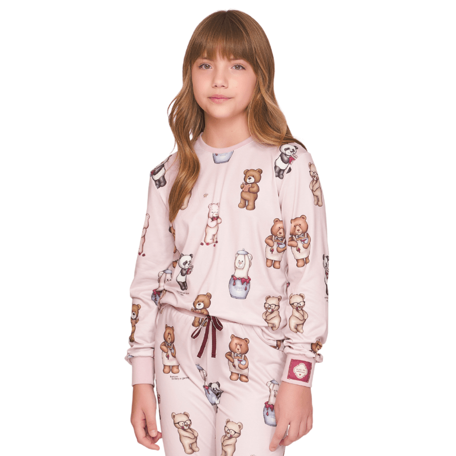 Com estampa exclusiva de ursinhos da coleção Sweet In Berries, ele traz aquele toque lúdico e encantador que as meninas amam — em um modelo moderno jogger que garante caimento perfeito e conforto absoluto.