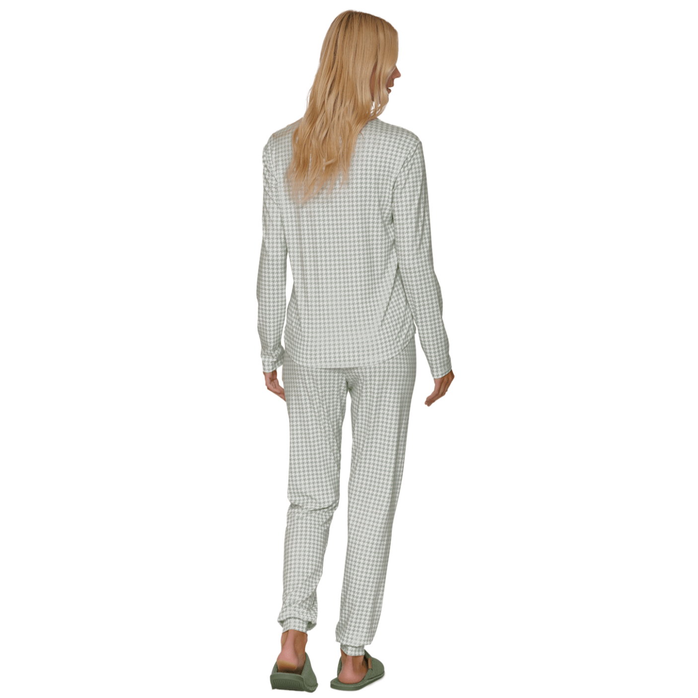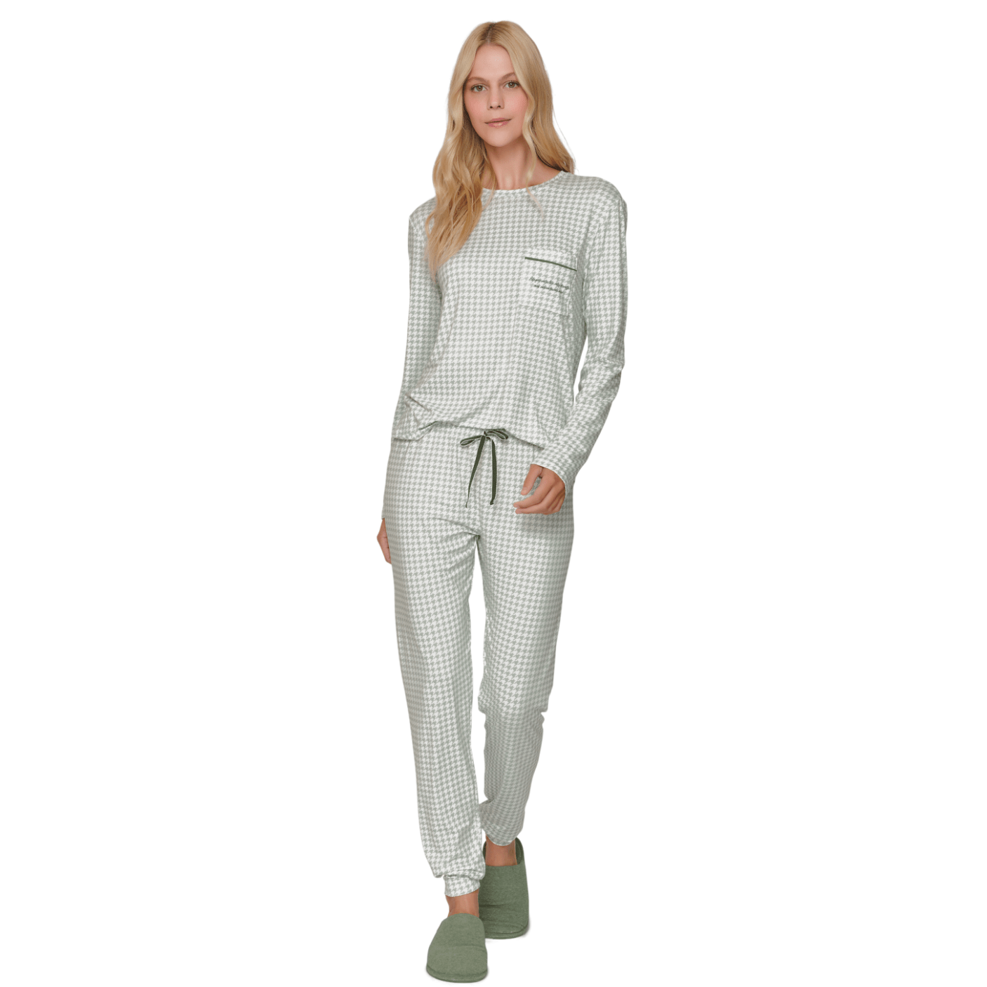 Elegância atemporal com conforto absoluto – Pijama Jogger Feminino Pied de Poule | Lua Luá