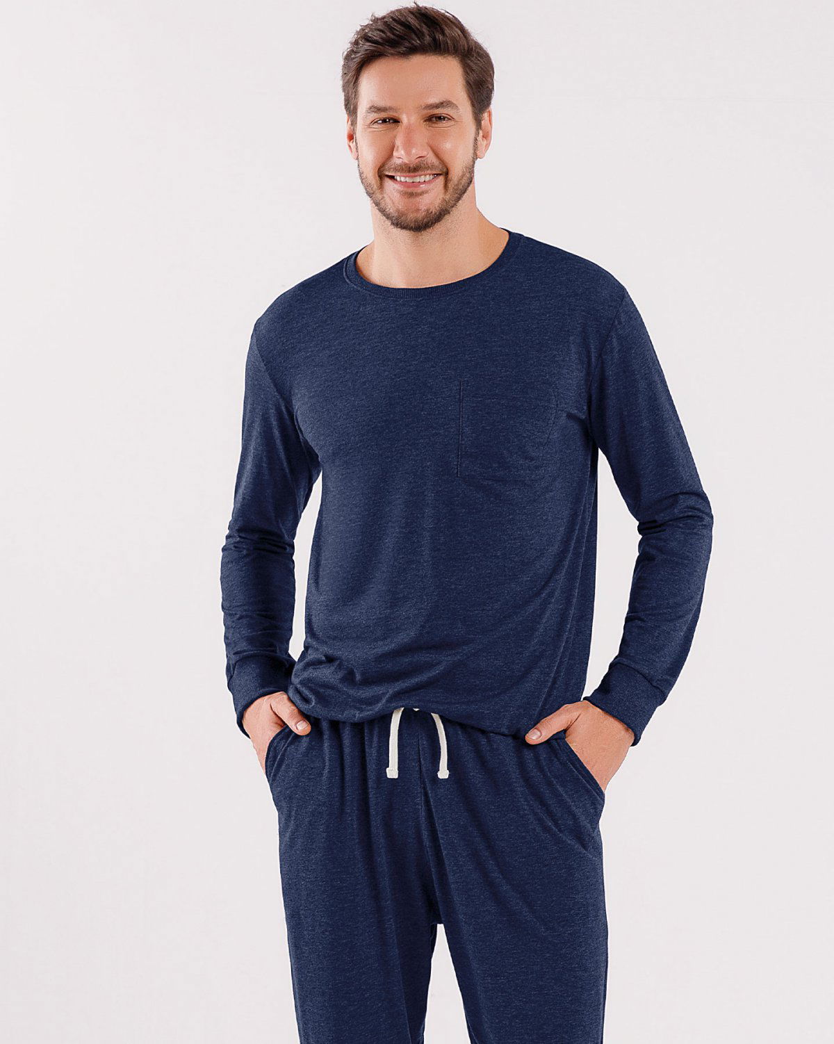 O Pijama Manga Longa com Calça é a combinação perfeita de estilo e bem-estar. Confeccionado em malha blend suave, com 50% algodão e 50% poliéster, esse conjunto proporciona o toque macio e aconchegante que você precisa para uma boa noite de sono ou para relaxar em casa com muito conforto.