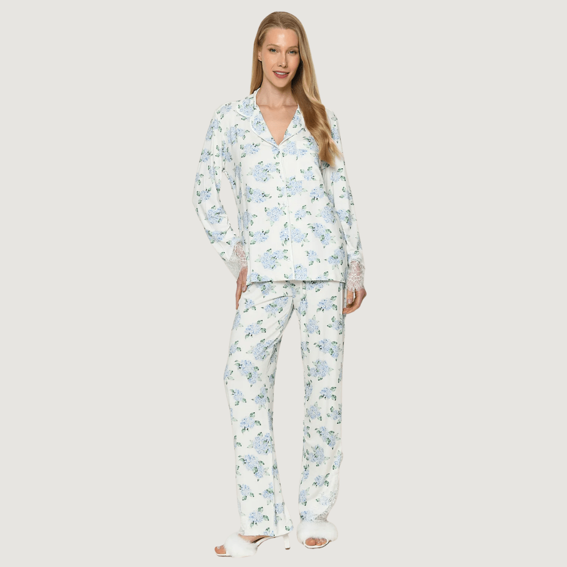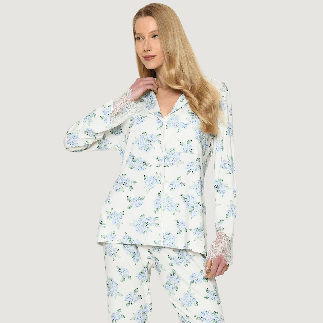 Pijama Longo Melina Hortensia Azul Miss Victtoria