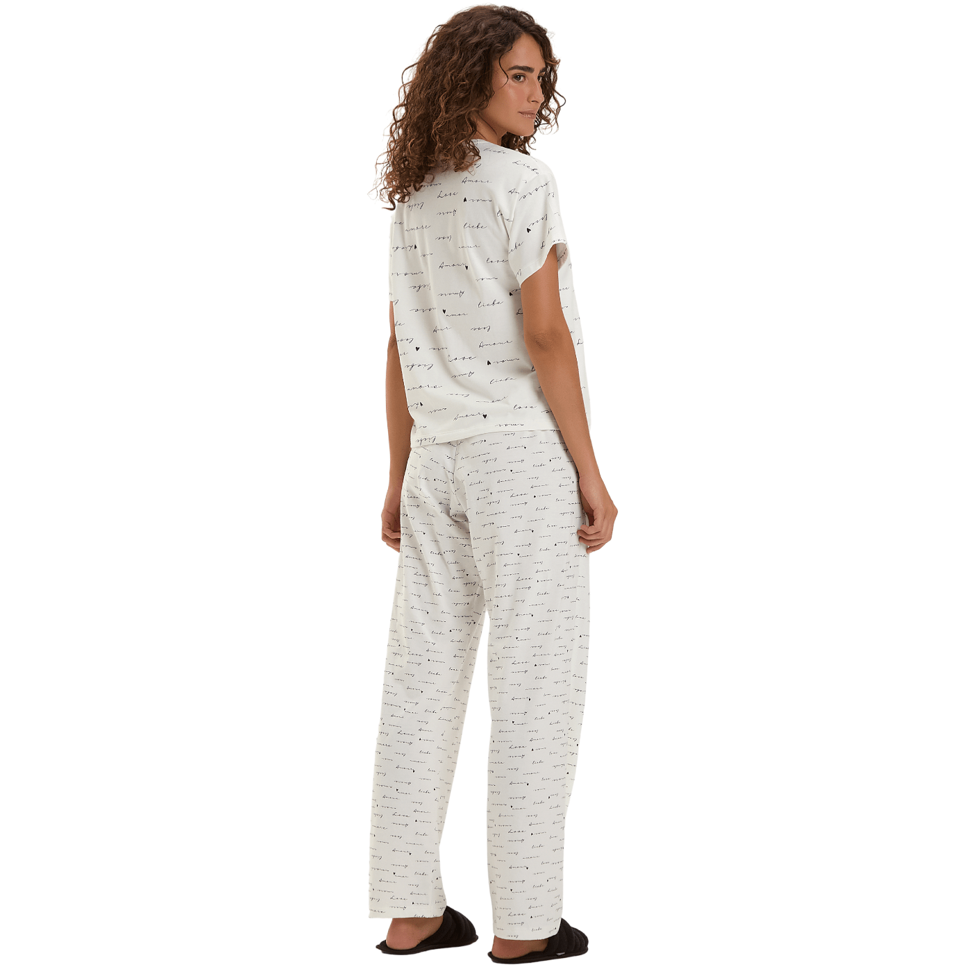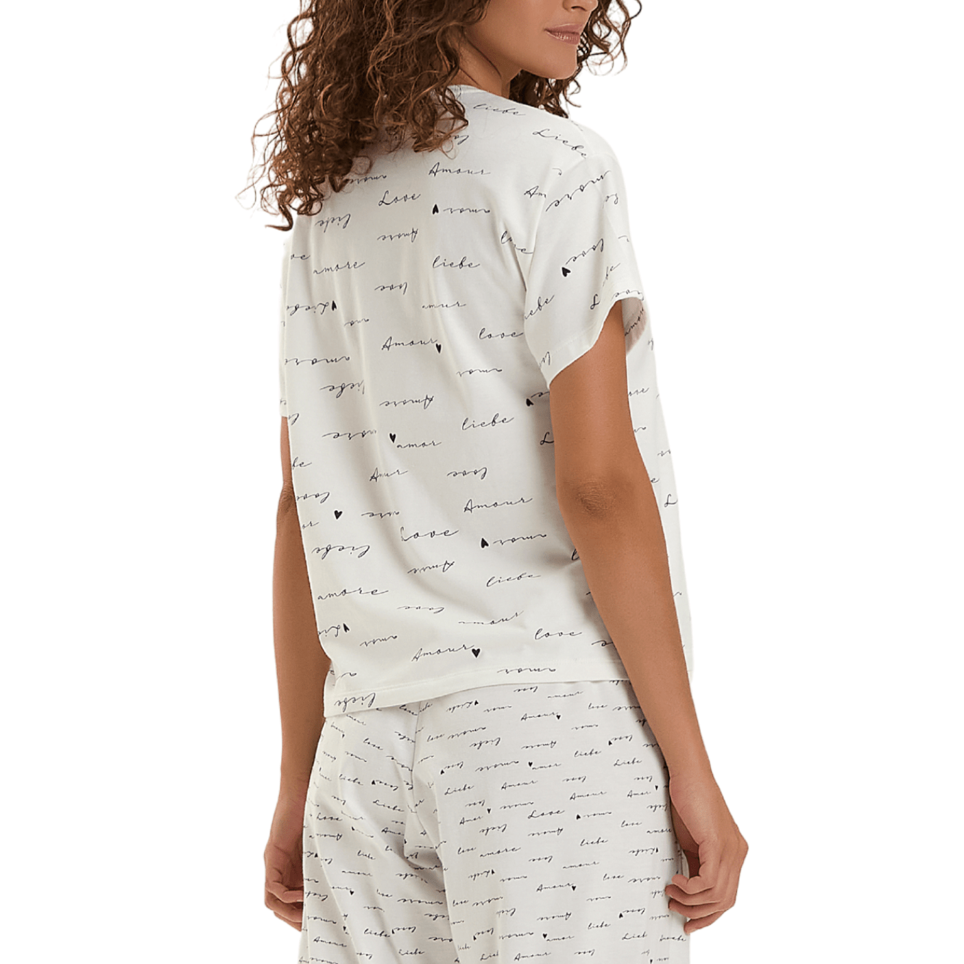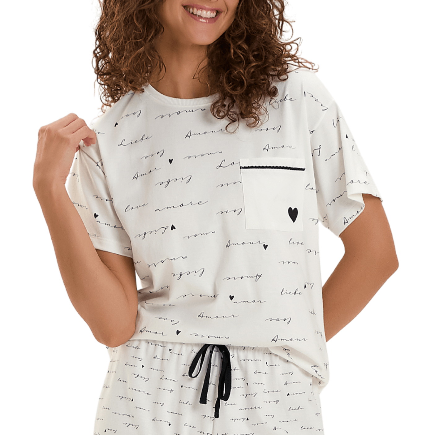 Pijama Manga Curta e Calça Escritas Amore Branco – Cor Com Amor