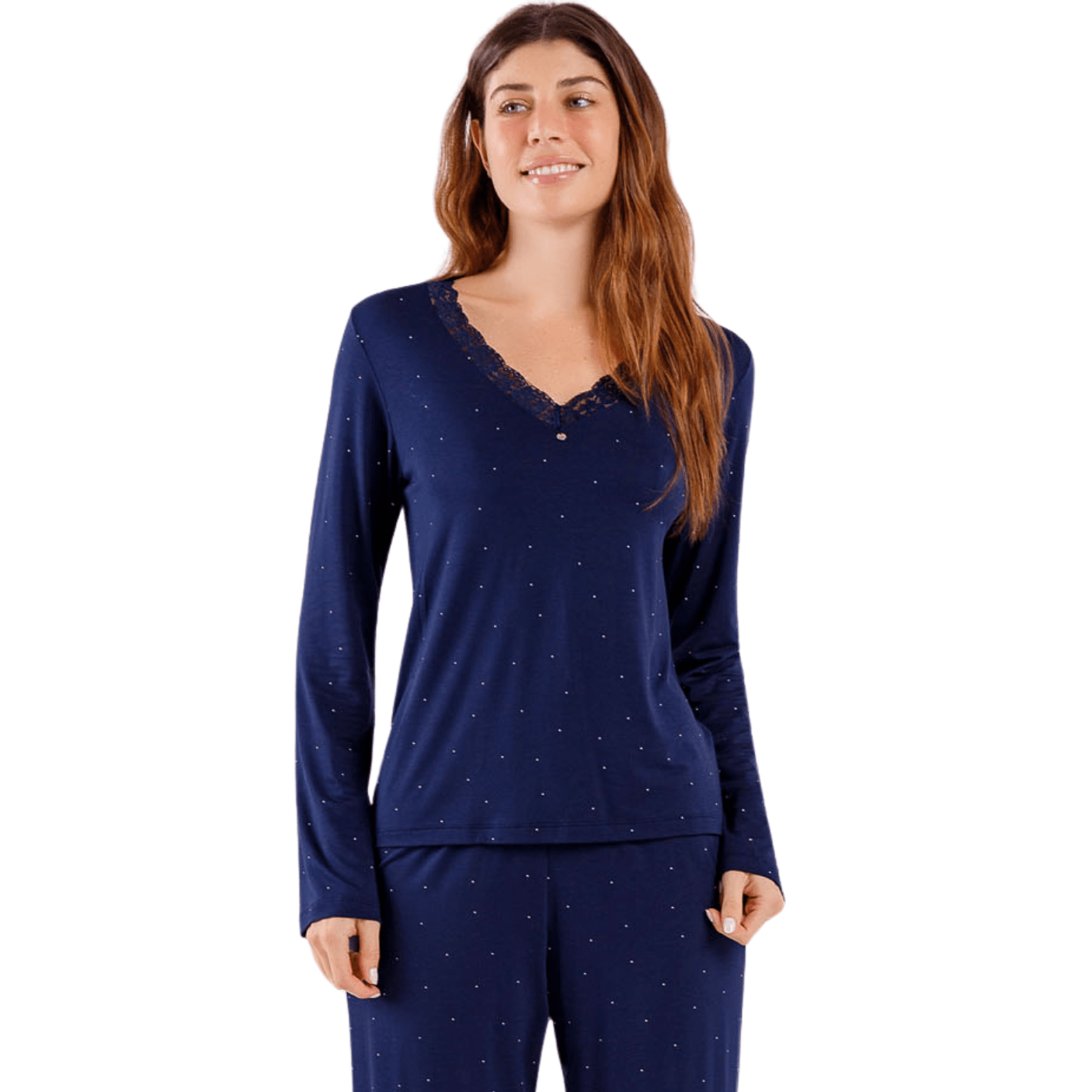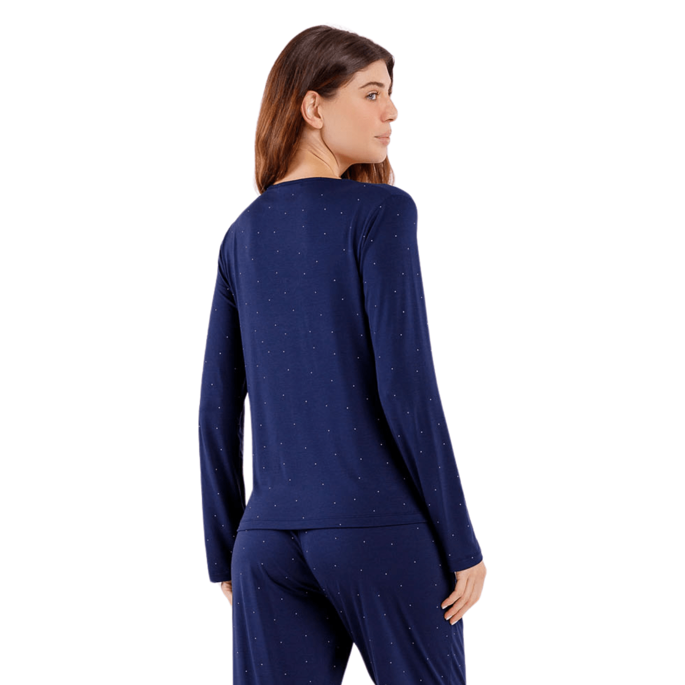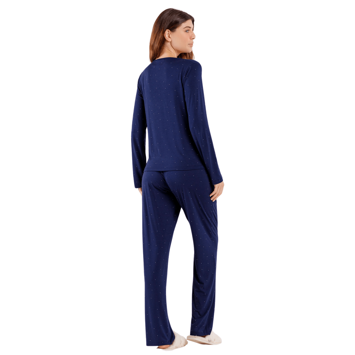 Conforto e charme para suas noites – Pijama Manga Longa Marinho Poás | Cor Com Amor