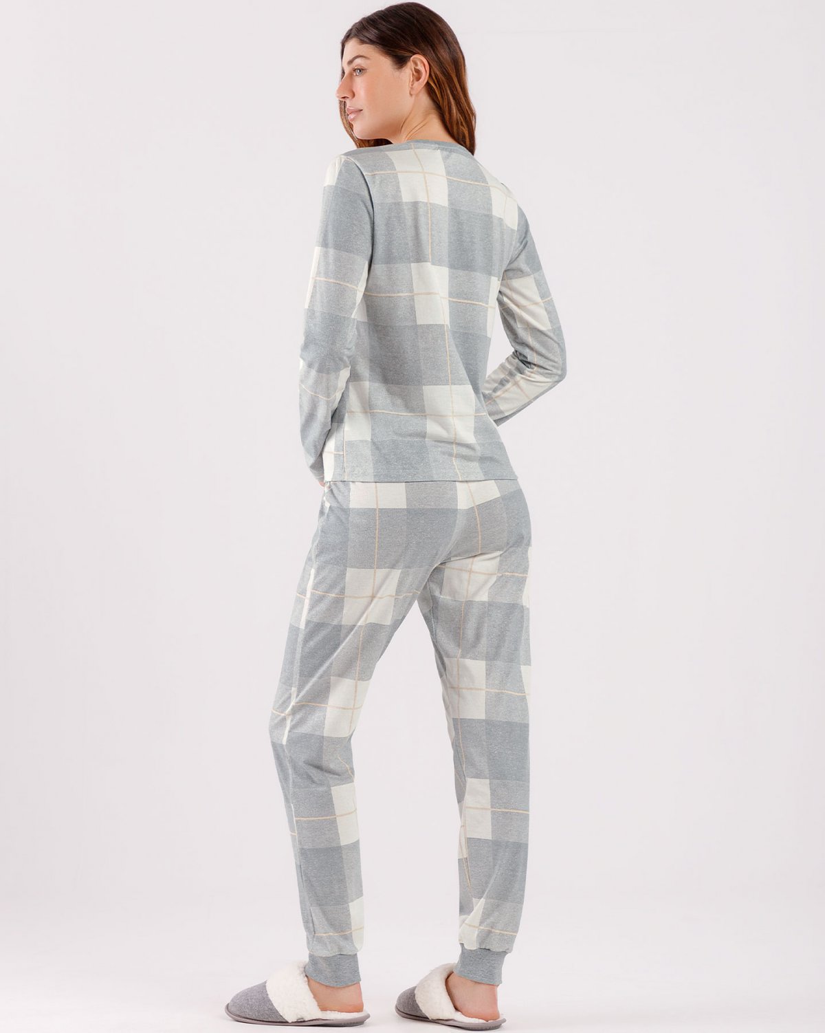 • Pijama feminino manga longa com calça jogger (punho)