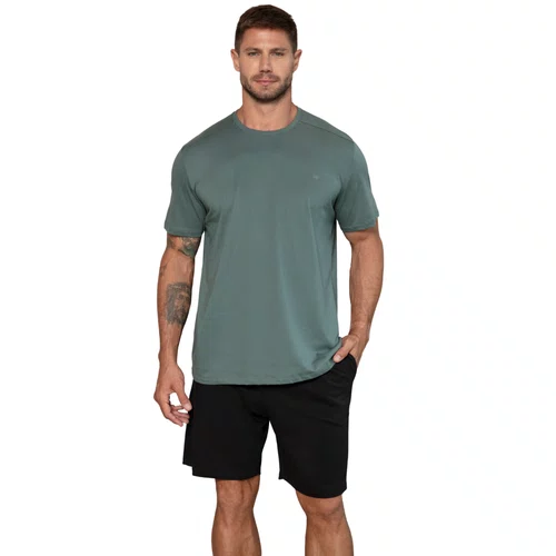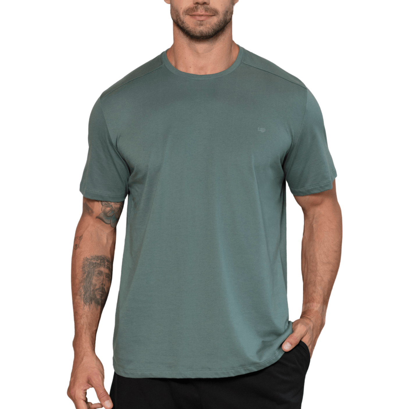 A camiseta, confeccionada em malha de algodão premium na cor verde, garante um toque suave e respirável sobre a pele, promovendo frescor e leveza durante o sono. Seu design clean e atemporal se adapta facilmente ao dia a dia, podendo até ser usado como loungewear.