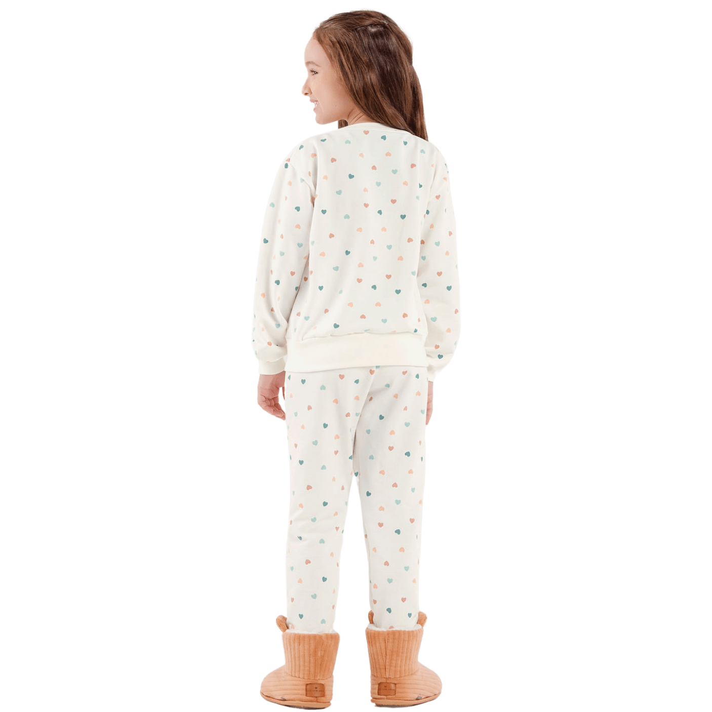 Charme e aconchego em cada detalhe – Pijama Feminino Manga Longa com Calça em Moletinho | Estampa de Corações