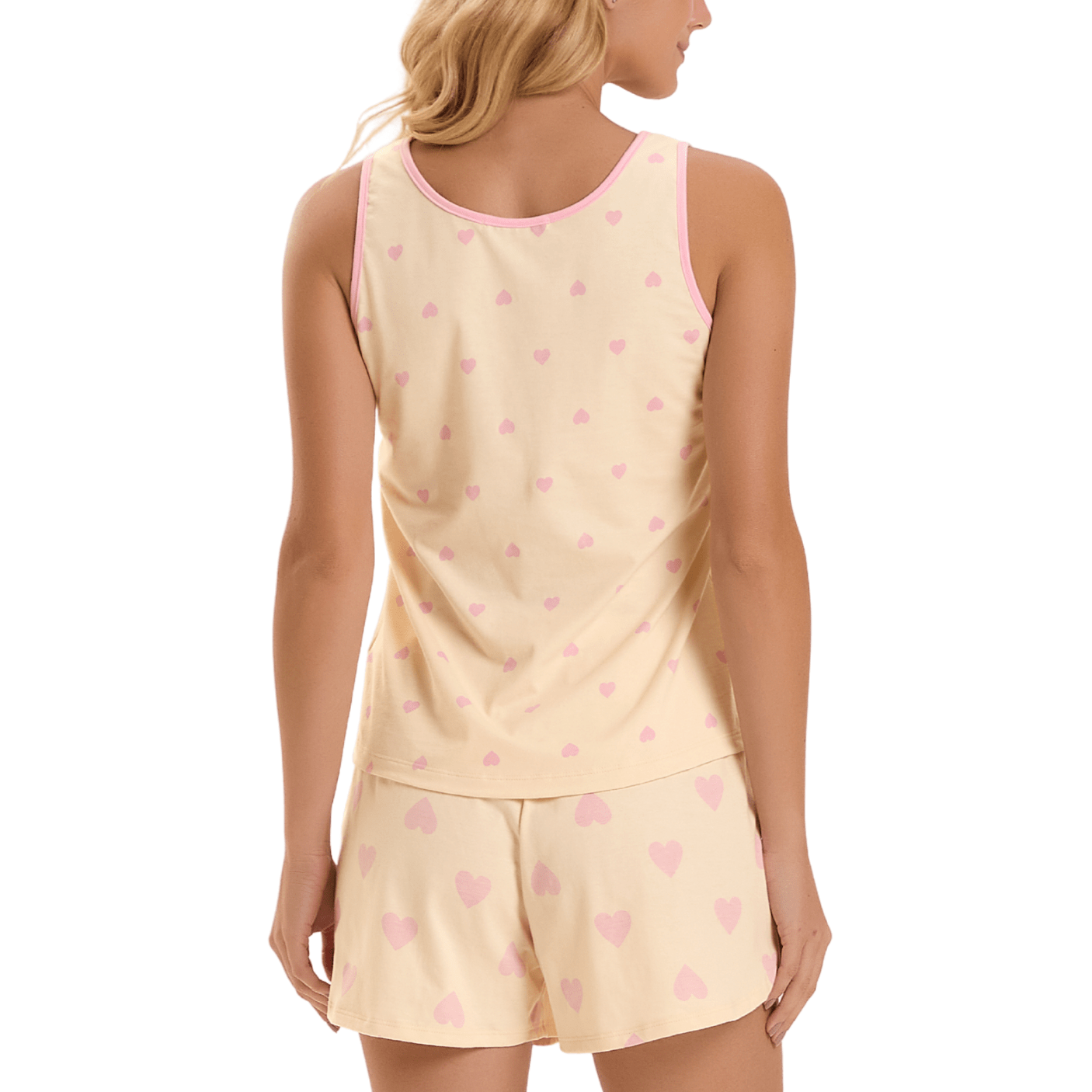Pijama Regata Curto Amarelo Corações Cor Com Amor