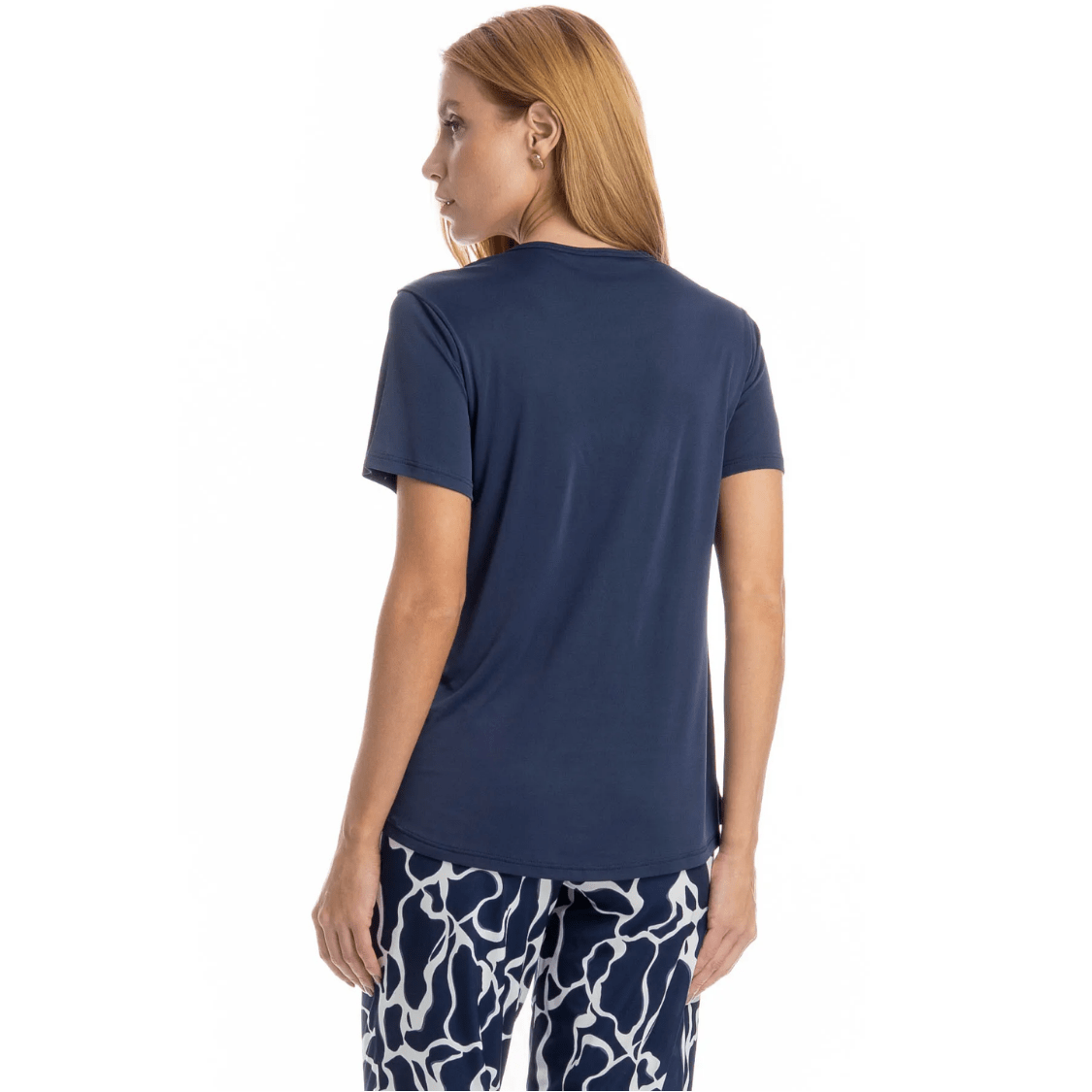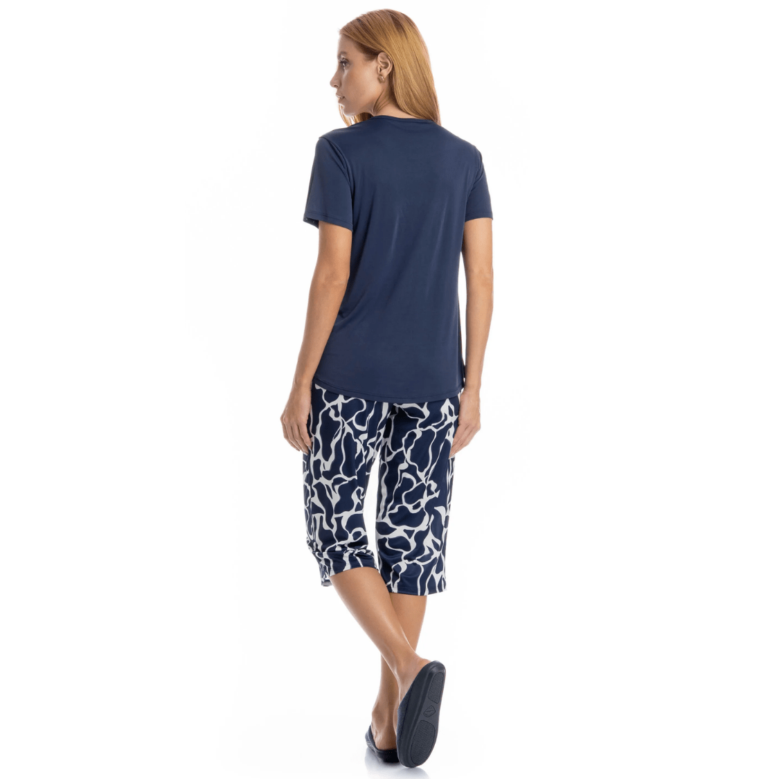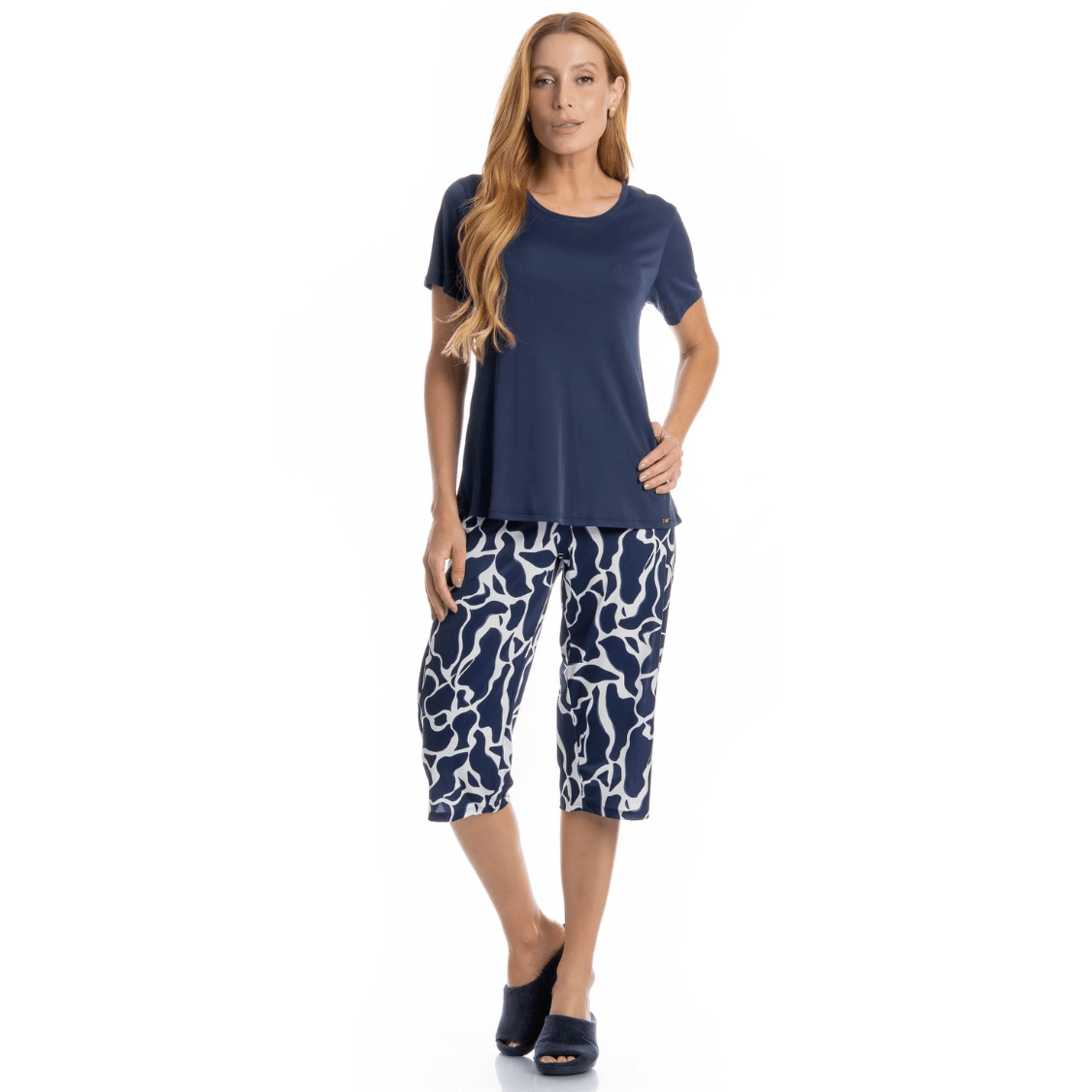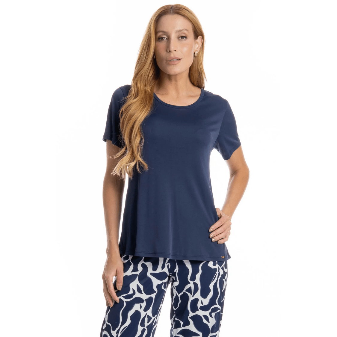 • Cor: Marinho (blusa lisa + calça estampada)