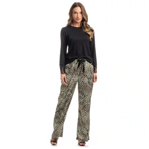 Pijama Feminino Longo Wide Leg Onça – Sofisticação e Conforto para Seus Momentos de Lazer