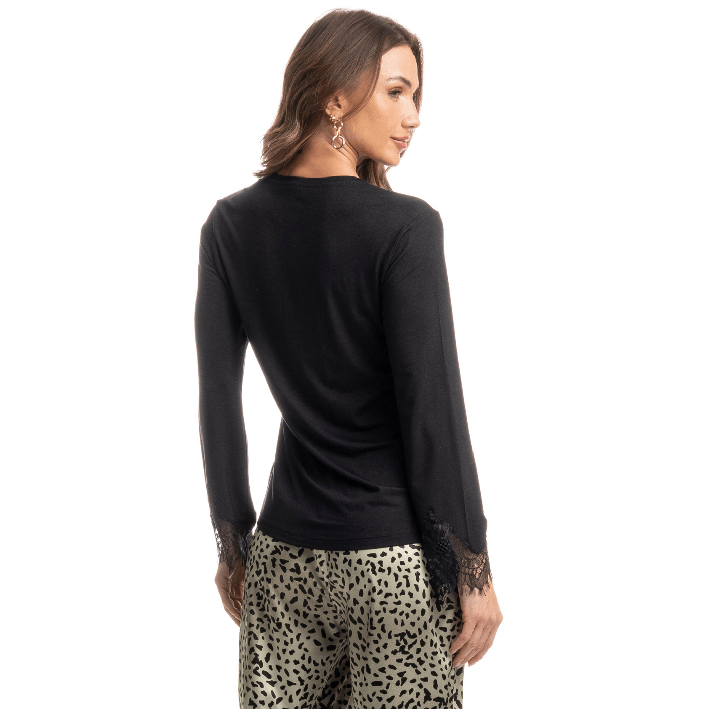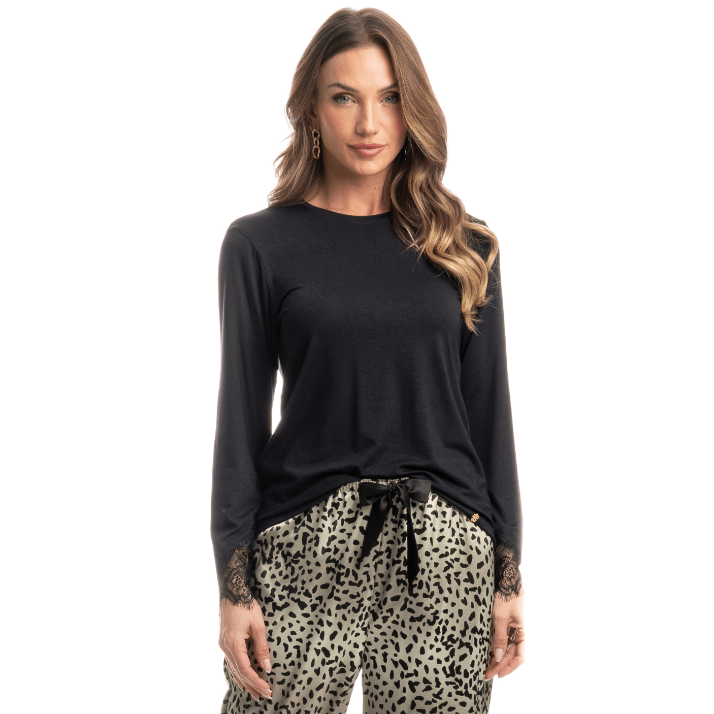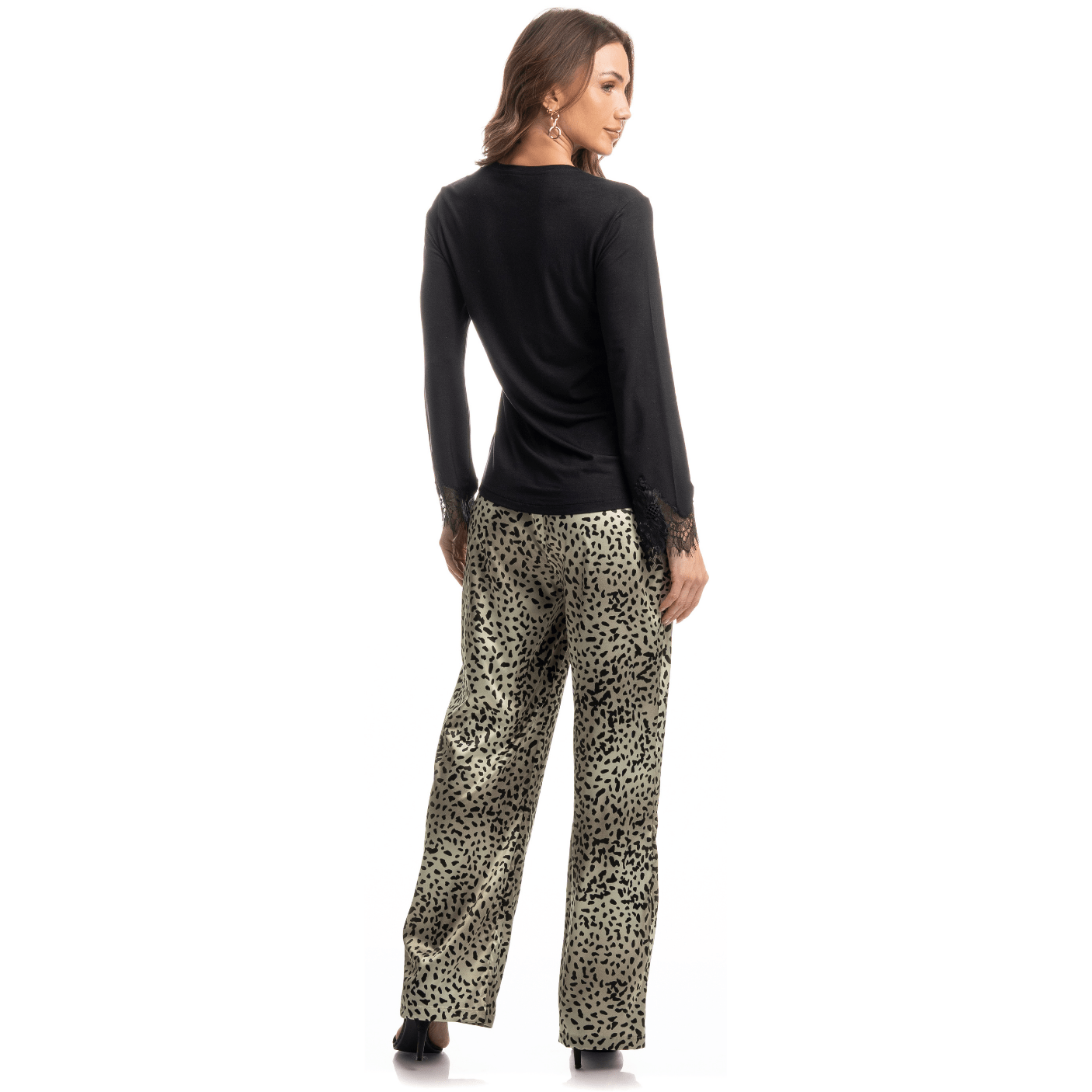 Pijama Wideleg Onça Renda Preto Daniela Tombini