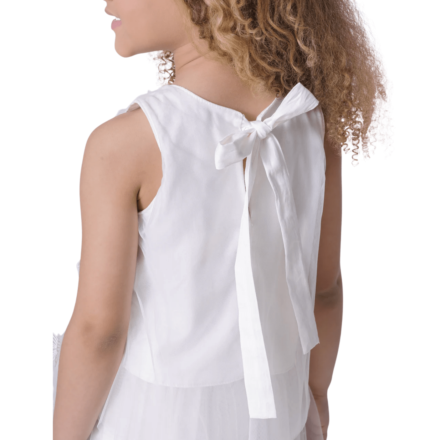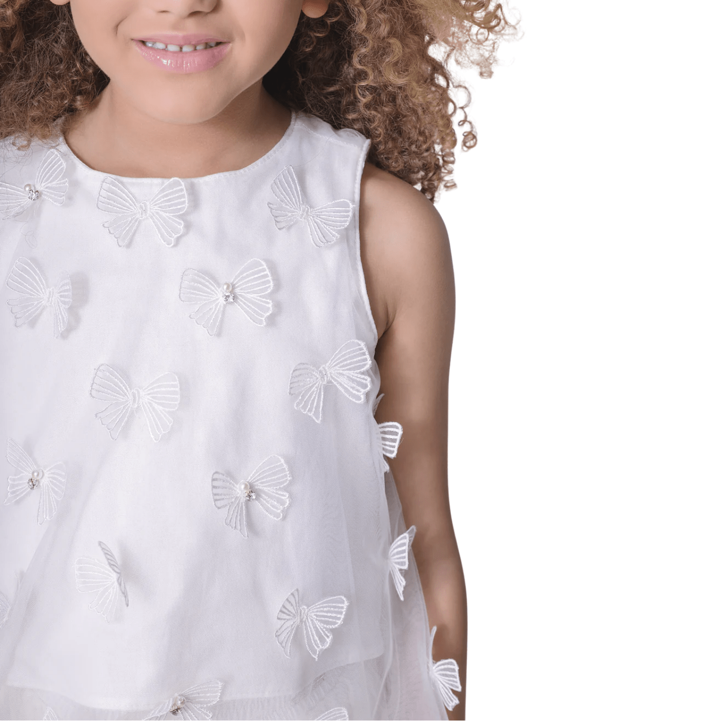 A Regata Algodão Lacinhos Tule Pituchinhus é sinônimo de charme e delicadeza. Confeccionada em algodão macio, a peça ganha ainda mais sofisticação com a sobreposição de tule fluido, que adiciona movimento e leveza ao visual. Os lacinhos bordados com aplicação de pérolas estão estrategicamente posicionados, criando um efeito romântico e exclusivo que traduz toda a essência da marca.