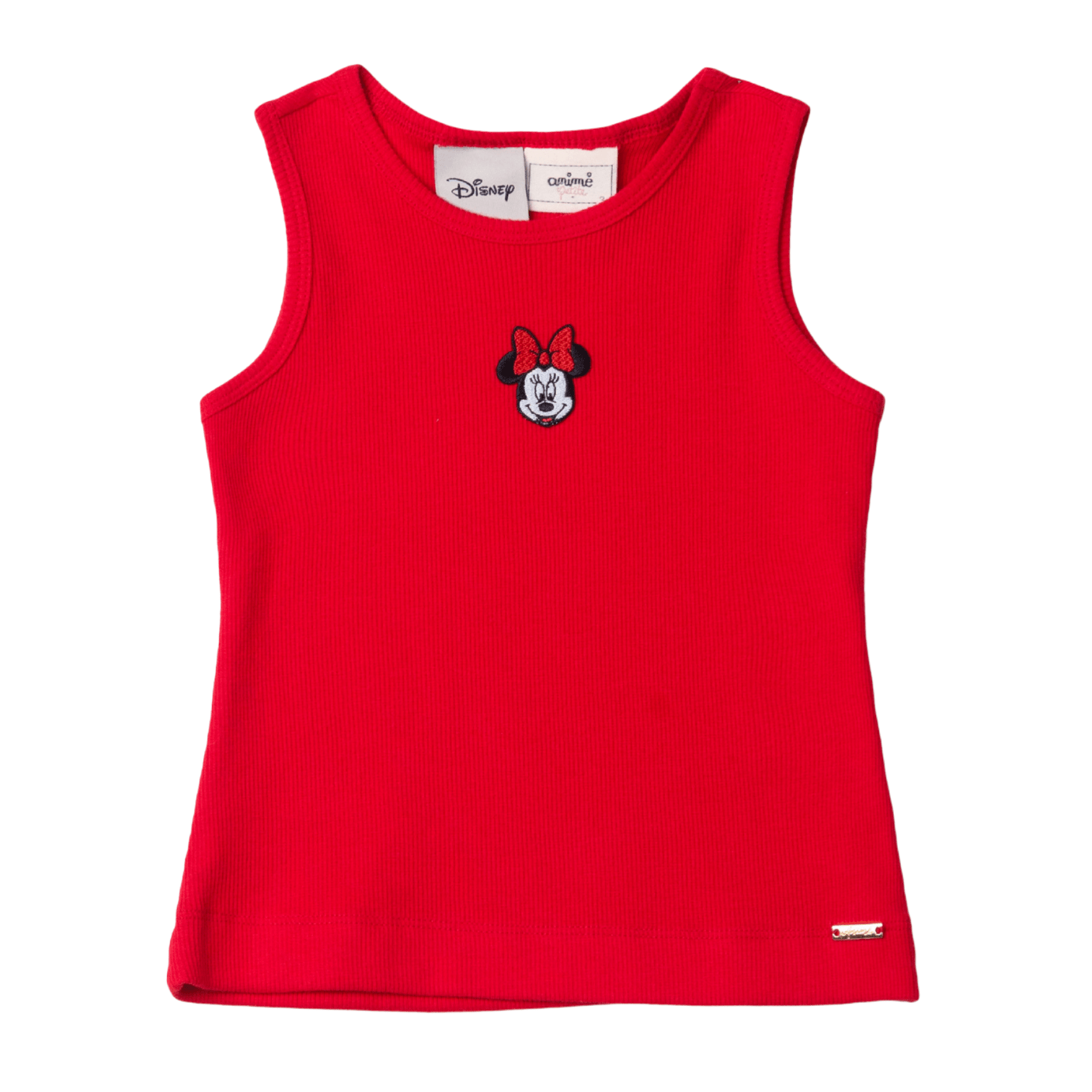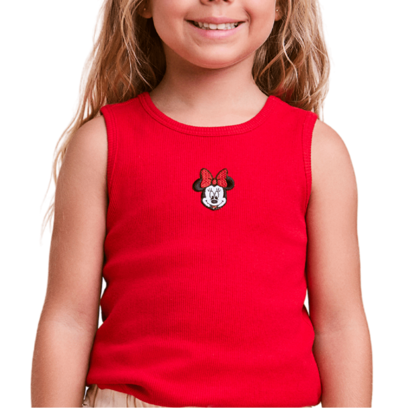 Com modelagem regata clássica e decote arredondado, a peça é prática, versátil e moderna. O grande destaque fica por conta do bordado delicado da Minnie na parte frontal, que adiciona um toque lúdico e divertido ao visual, sem perder a sofisticação. A cor vermelha vibrante dá ainda mais personalidade à peça, tornando-a um item atemporal e cheio de estilo.