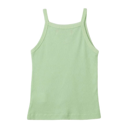 Confeccionada em malha canelada (ribana) macia e com elasticidade, a peça possui alças finas e modelagem ajustável ao corpo, proporcionando conforto e liberdade para brincar, passear e aproveitar os dias quentes.