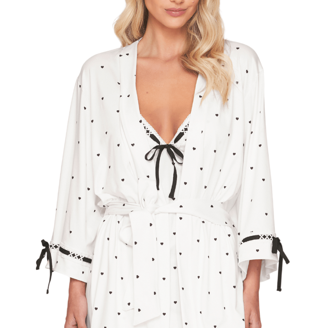 Confeccionado em tecido leve, fluido e macio, o robe proporciona um caimento suave e confortável sobre o corpo. O modelo conta com amarração frontal que valoriza a silhueta, além de detalhes delicados nas mangas com laços, que trazem charme e feminilidade ao visual.