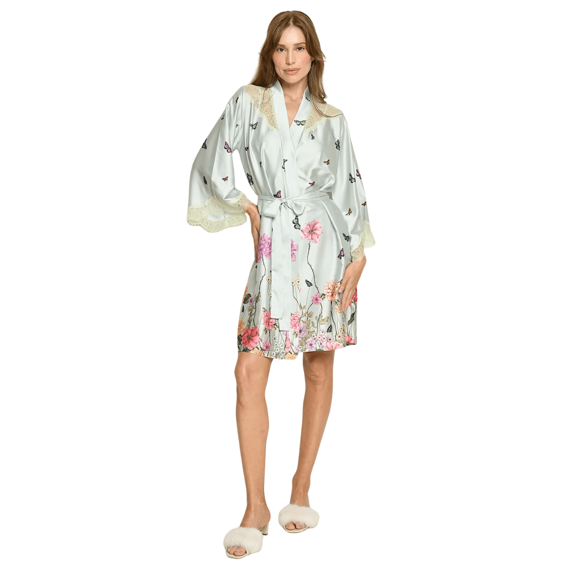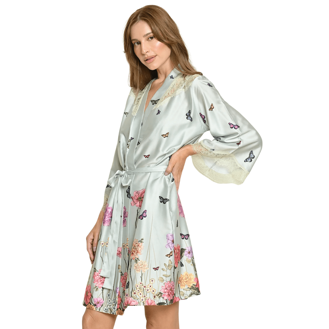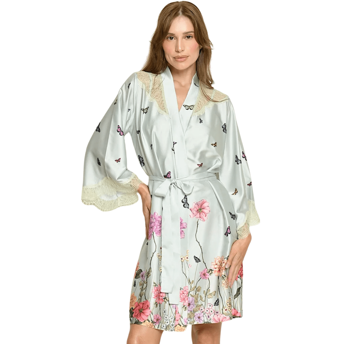 Confeccionado em tecido leve e fluido, o robe proporciona um caimento suave e confortável sobre o corpo. Os detalhes em renda nas mangas e gola adicionam um toque sofisticado e encantador à peça.