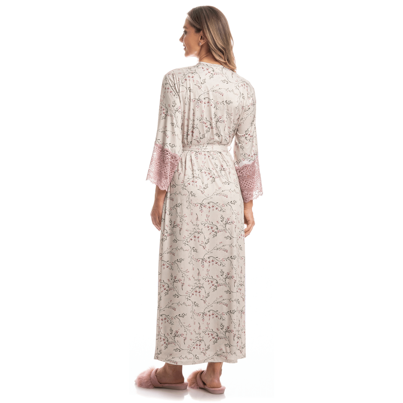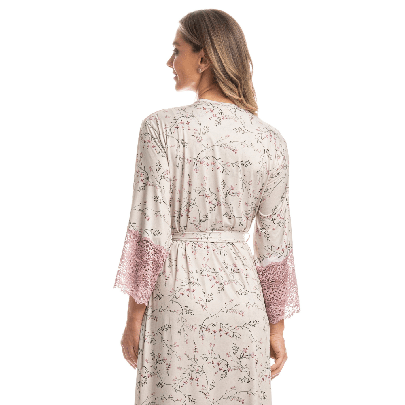 Confeccionado em Visco, um tecido leve e fluído, composto por uma combinação de viscose, poliéster e elastano, este robe proporciona um toque suave e macio sobre a pele, garantindo um caimento impecável e extremo conforto para os momentos de relaxamento. Além disso, sua composição confere excelente respirabilidade, permitindo que o corpo se mantenha fresco e confortável em qualquer estação do ano.