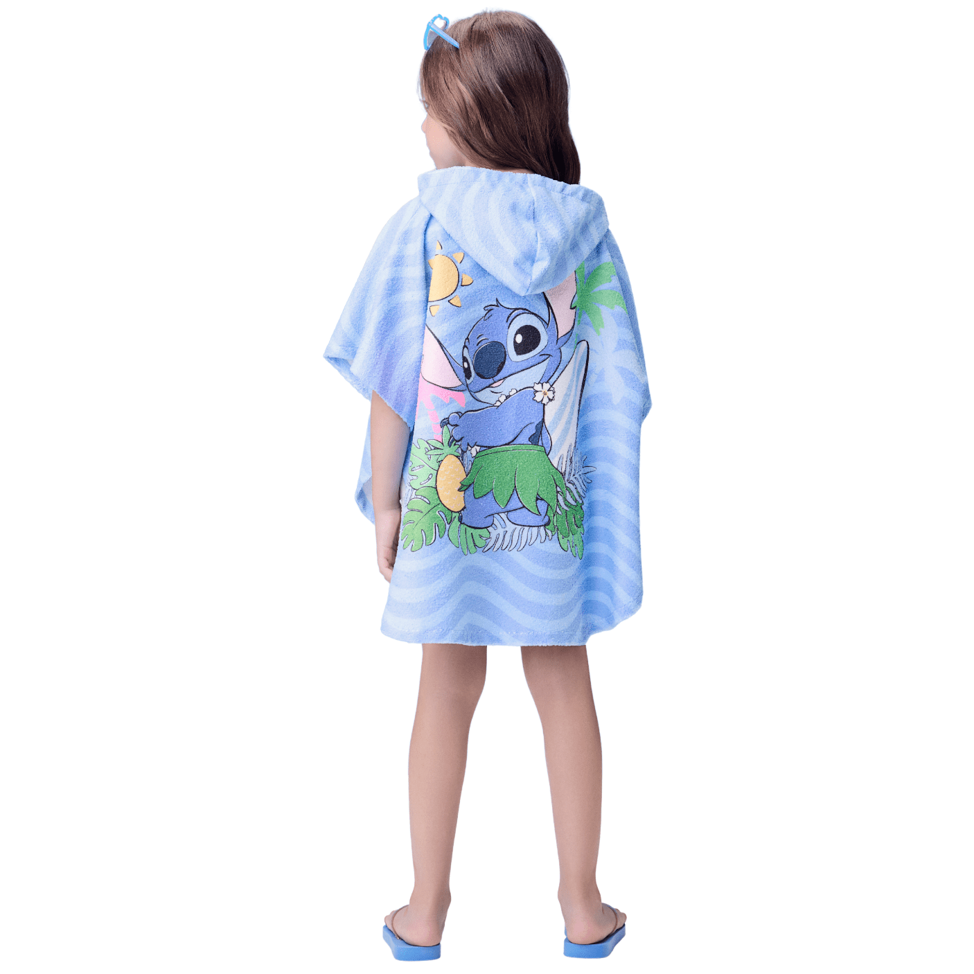É prático, divertido e superfofinho — perfeito para acompanhar todos os momentos de diversão com o Stitch, garantindo conforto e estilo até depois da água.