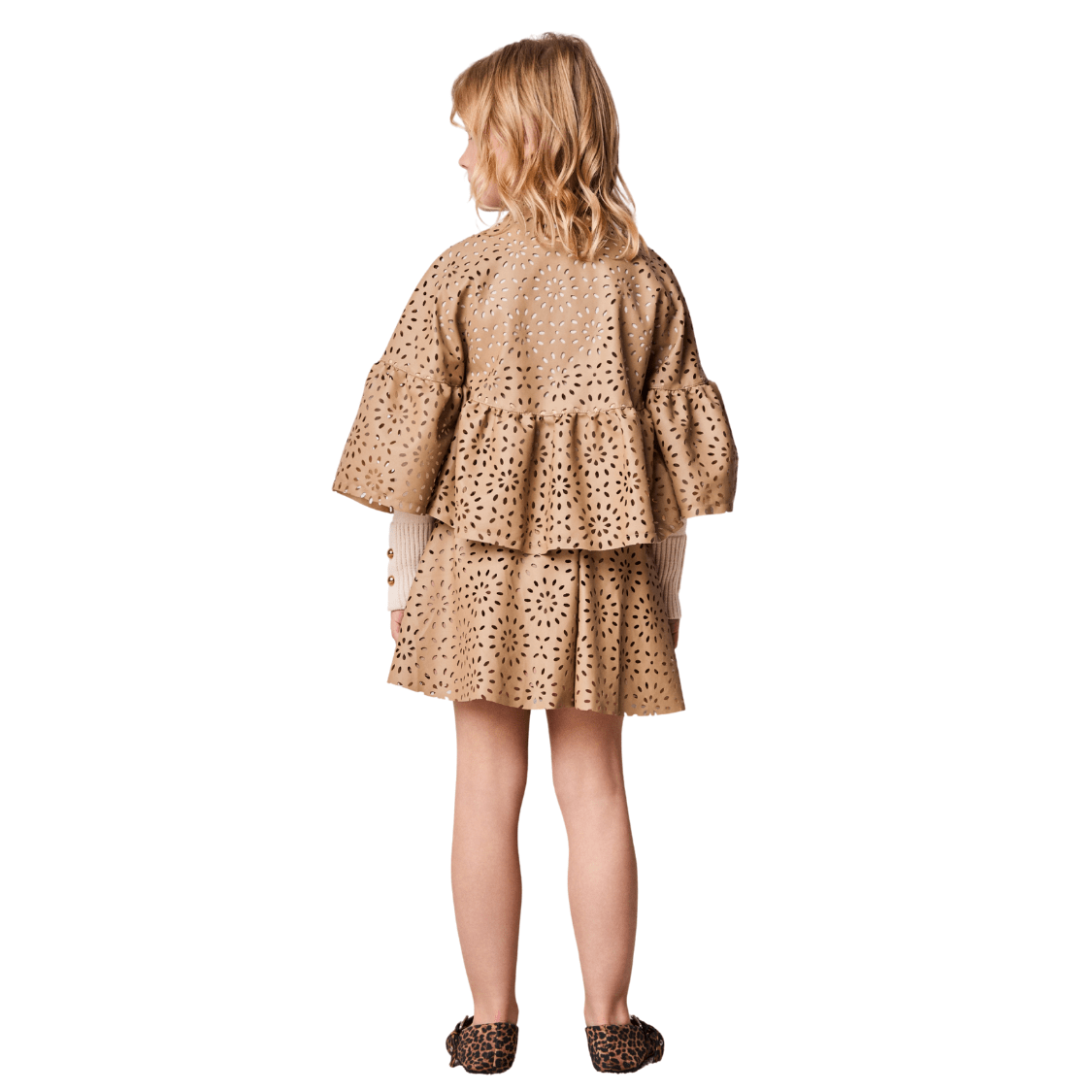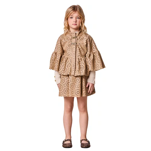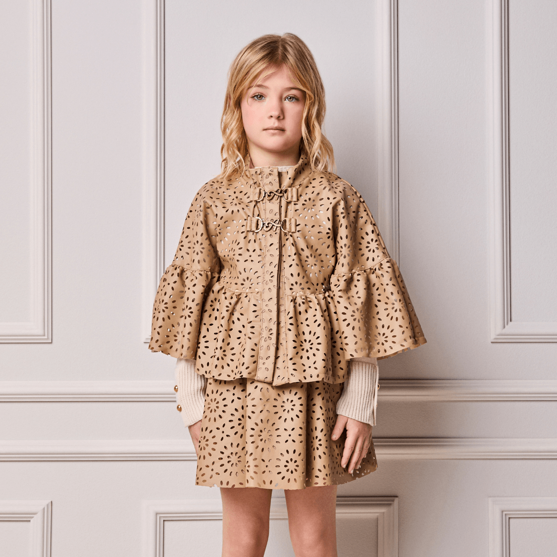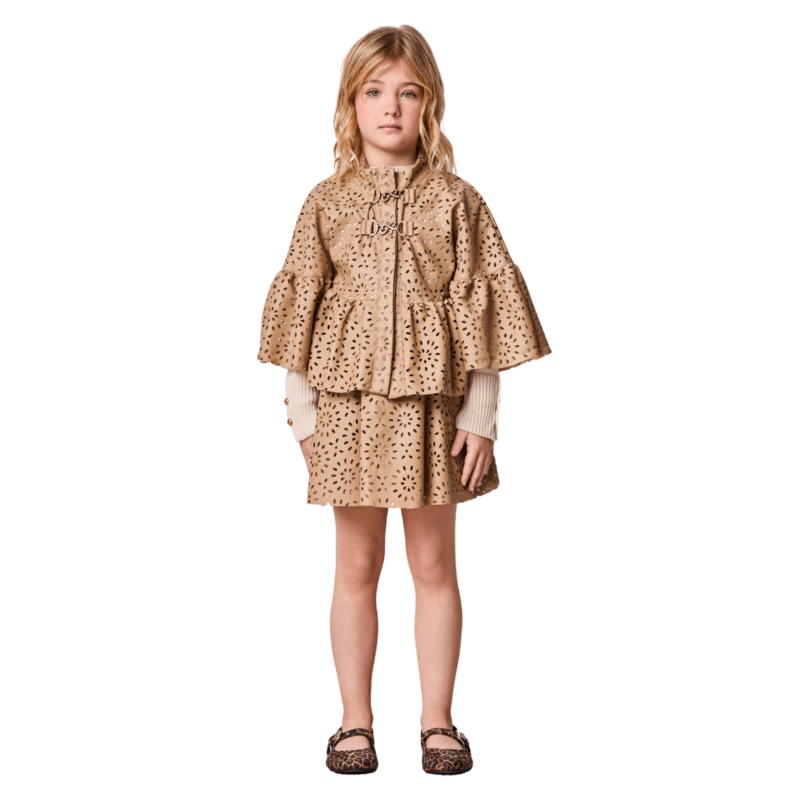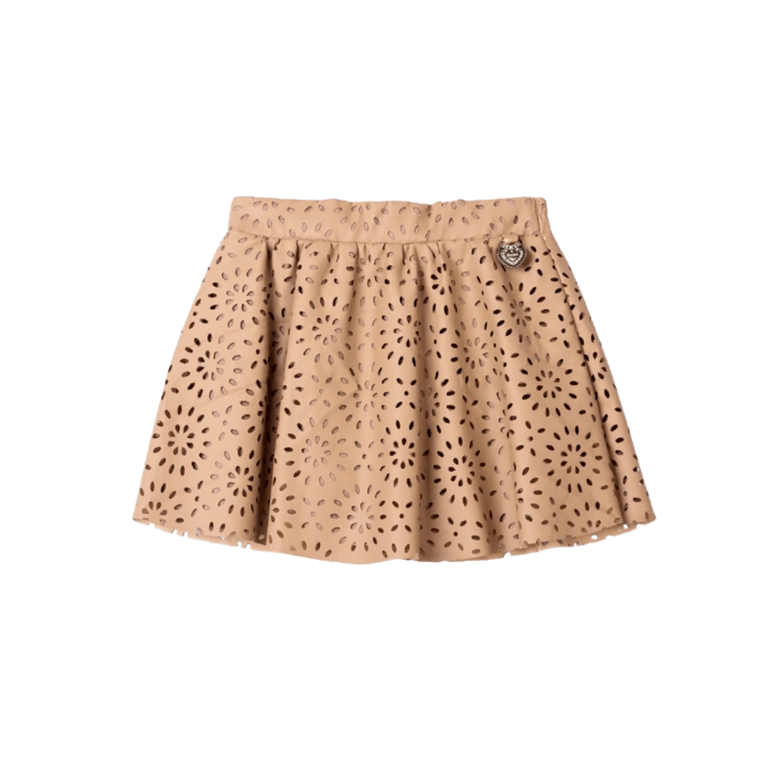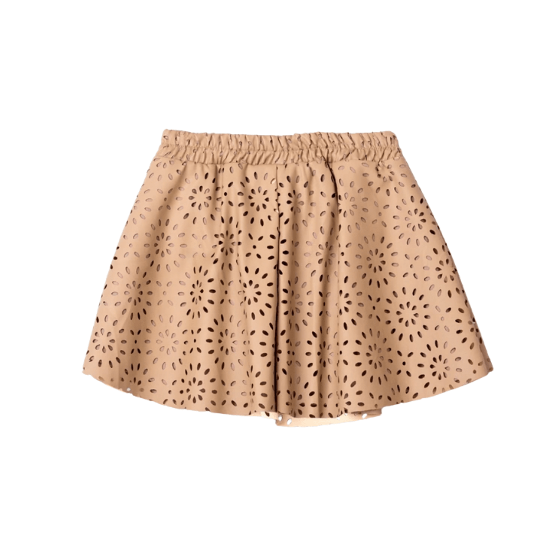 A Saia Couro Vazado Flores Mocca Animê é uma peça elegante e cheia de personalidade, perfeita para compor looks infantis sofisticados e modernos. Com design delicado, a saia apresenta recortes florais vazados em couro sintético, criando um visual charmoso e diferenciado.