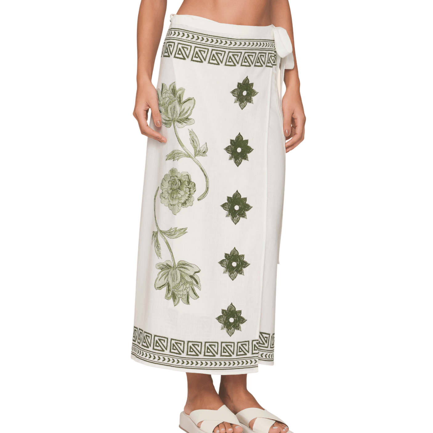 A Saia Longa Mirage Lua Lua é a escolha perfeita para mulheres que buscam um look sofisticado, leve e com ar boho-chic. Com estampa exclusiva em tons de verde e delicados desenhos florais, ela combina elegância natural com um toque artesanal que valoriza os detalhes.