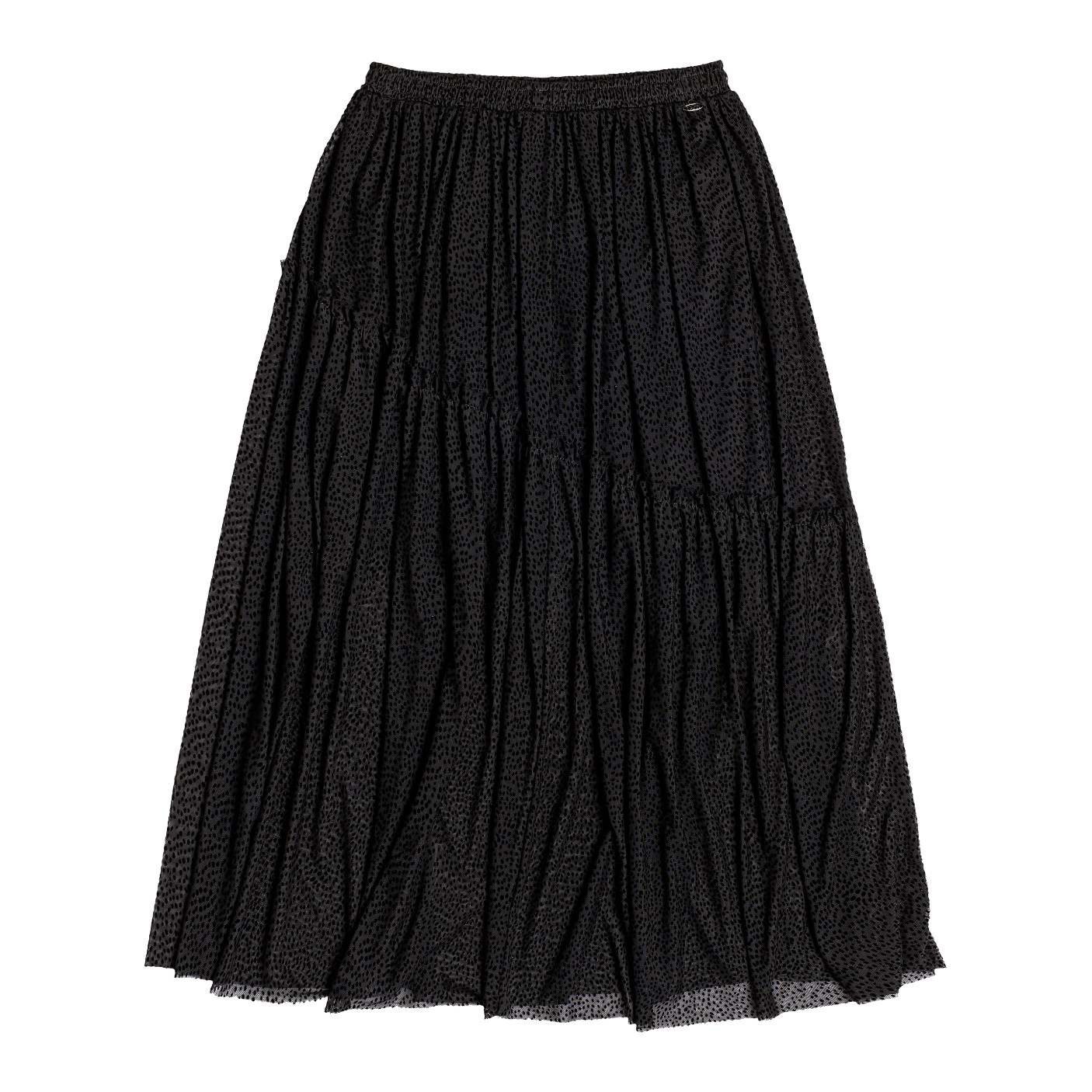 Com um design atemporal e ao mesmo tempo super atual, essa saia é ideal para quem ama se expressar através da moda e valoriza peças versáteis, que transitam com facilidade entre o casual e o sofisticado. Seu comprimento midi traz sofisticação instantânea, enquanto o tule com poás delicadamente aplicados adiciona textura e um toque lúdico ao visual, equilibrando feminilidade com um ar moderno e fashionista.
