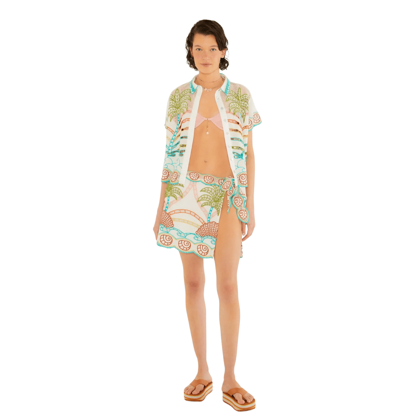 Autêntica, tropical e artesanal! A Saia Richelieu Paisagem Carioca da Farm traduz a alma do Rio de Janeiro em cada detalhe. Com bordados richelieu feitos com delicadeza e estampa inspirada em cenários litorâneos, ela é a peça perfeita para compor looks de praia, piscina e pós-praia com estilo e brasilidade.