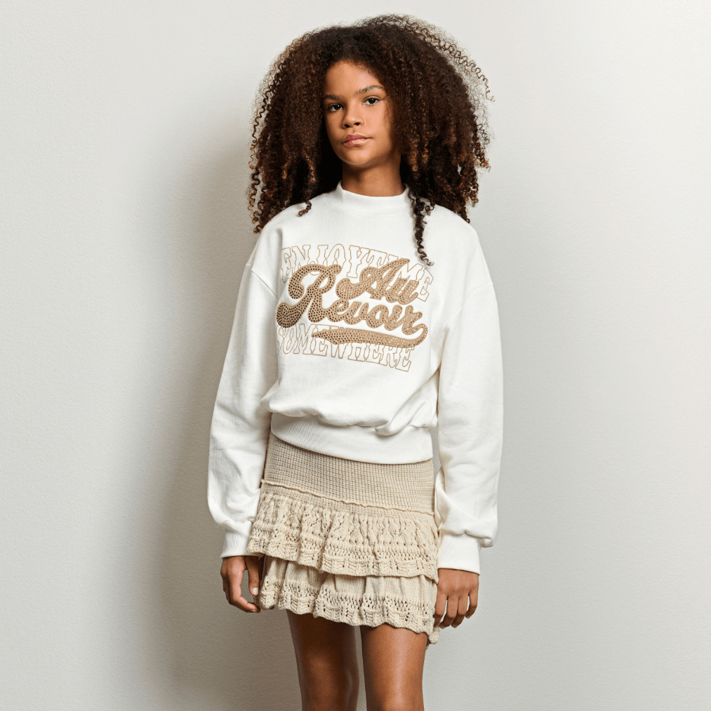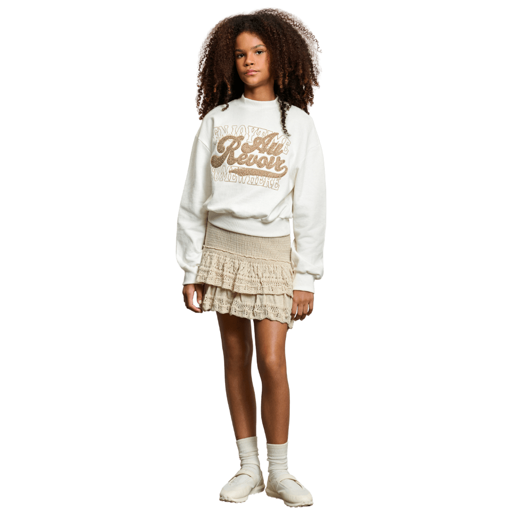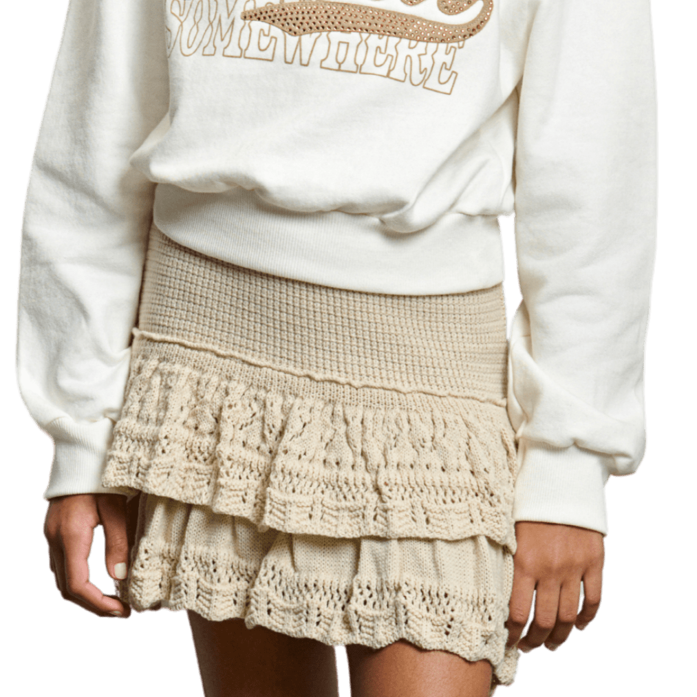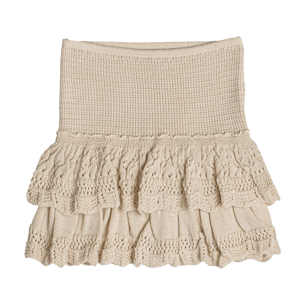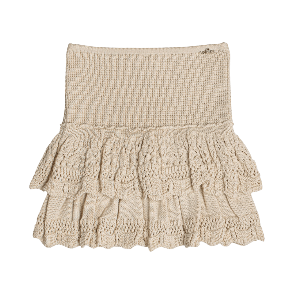 Confeccionada em tricot macio e confortável, a saia possui modelagem com camadas e babados, criando movimento e um caimento leve e encantador. O cós ajustado garante conforto ao vestir, enquanto os detalhes em relevo valorizam ainda mais a peça.
