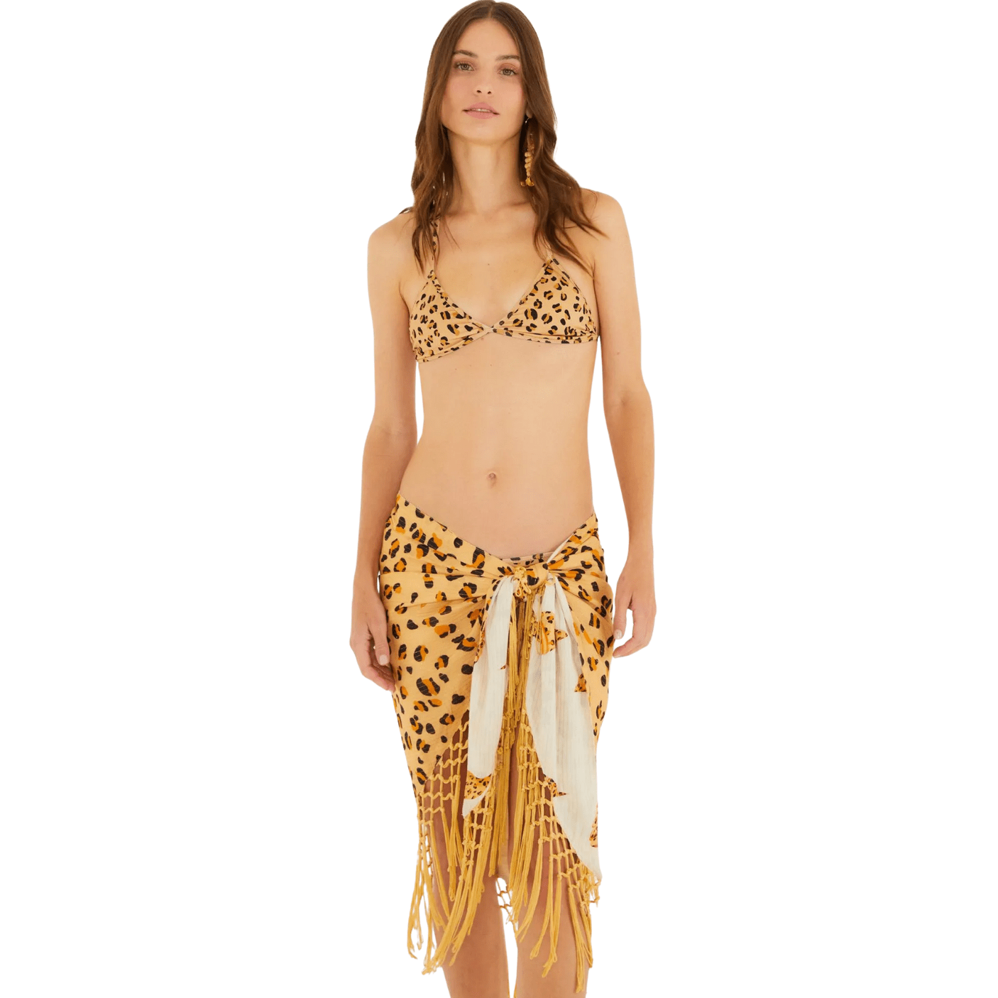 Sua modelagem versátil permite diversas formas de uso, adaptando-se facilmente a diferentes estilos e ocasiões. Pode ser usada como saia pareô amarrada na cintura, como sobreposição elegante sobre o biquíni ou maiô, ou ainda como peça-chave em produções pós-praia combinada com blusas leves ou croppeds. A amarração frontal possibilita ajuste prático e personalizado, oferecendo liberdade e originalidade para criar diferentes propostas no mesmo dia.