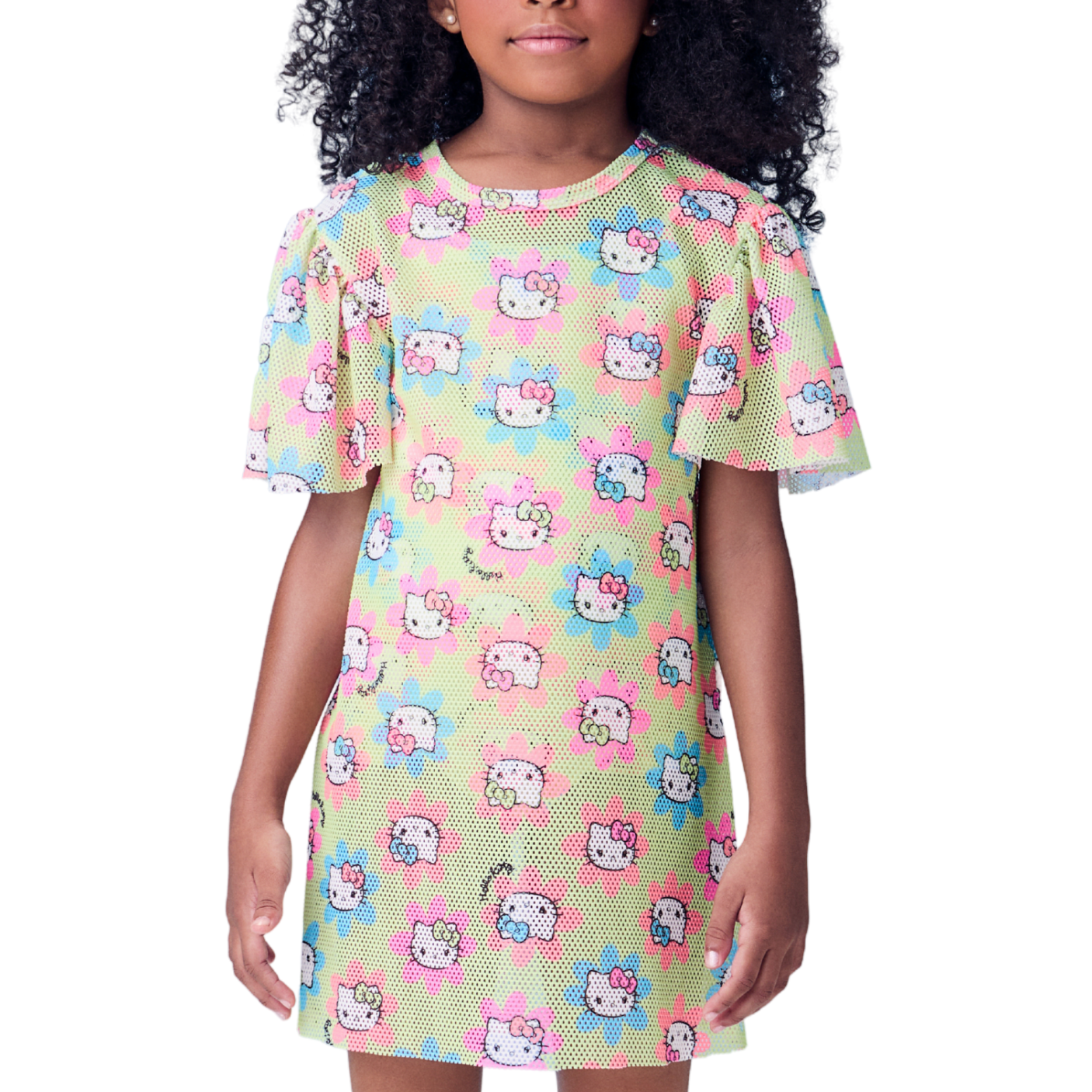 A Saída de Praia Hello Kitty Flores Verde Momi é a escolha perfeita para completar o look das pequenas com muito estilo e conforto.