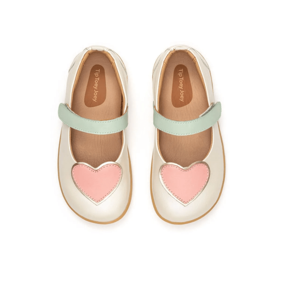 A Sapatilha Couro Heart Antique White Pink Lake Tip Toey Joey é a escolha perfeita para trazer charme, conforto e segurança aos primeiros passos da sua pequena