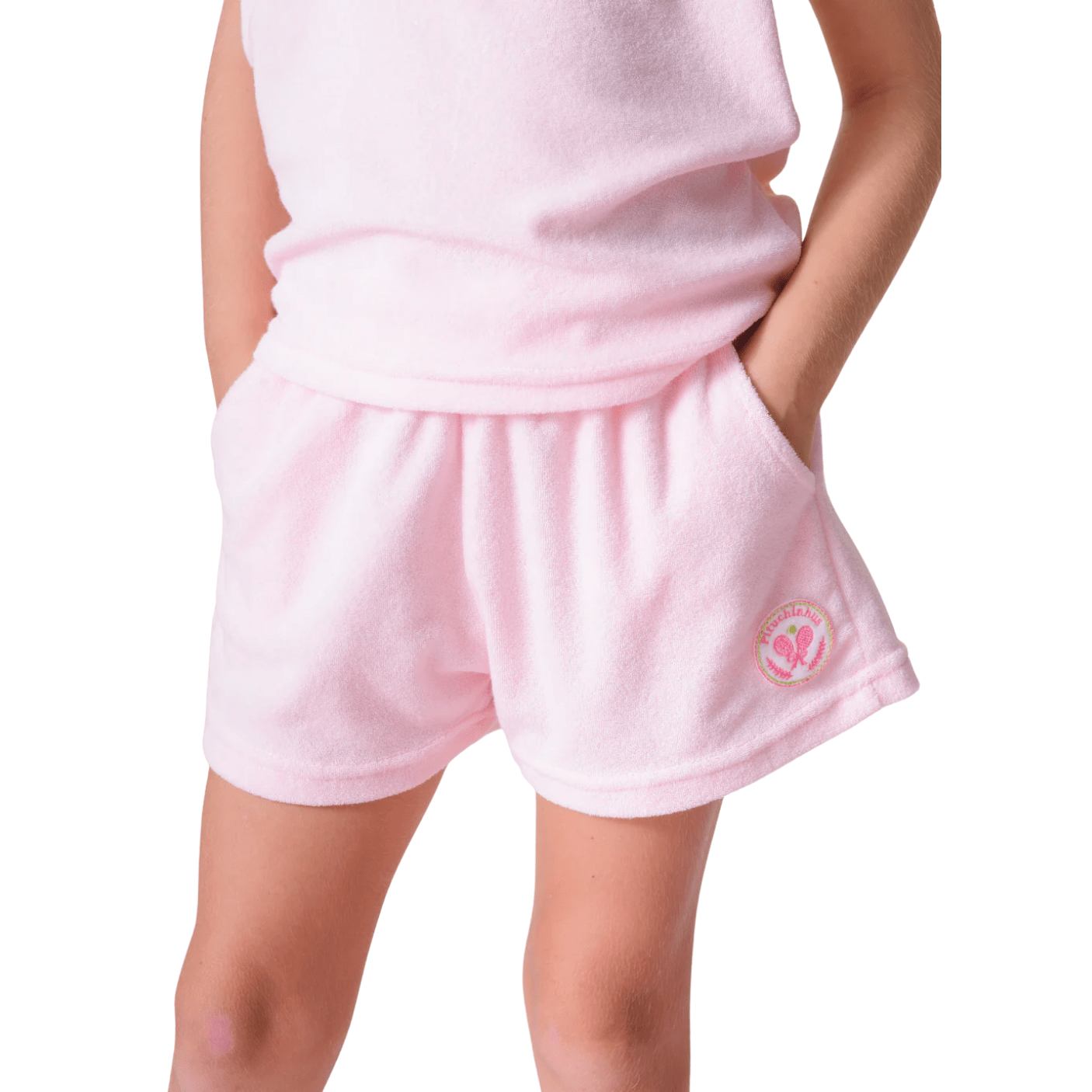 O Short Atoalhado Patches Raquete Rosa Pituchinhus é puro charme e conforto!