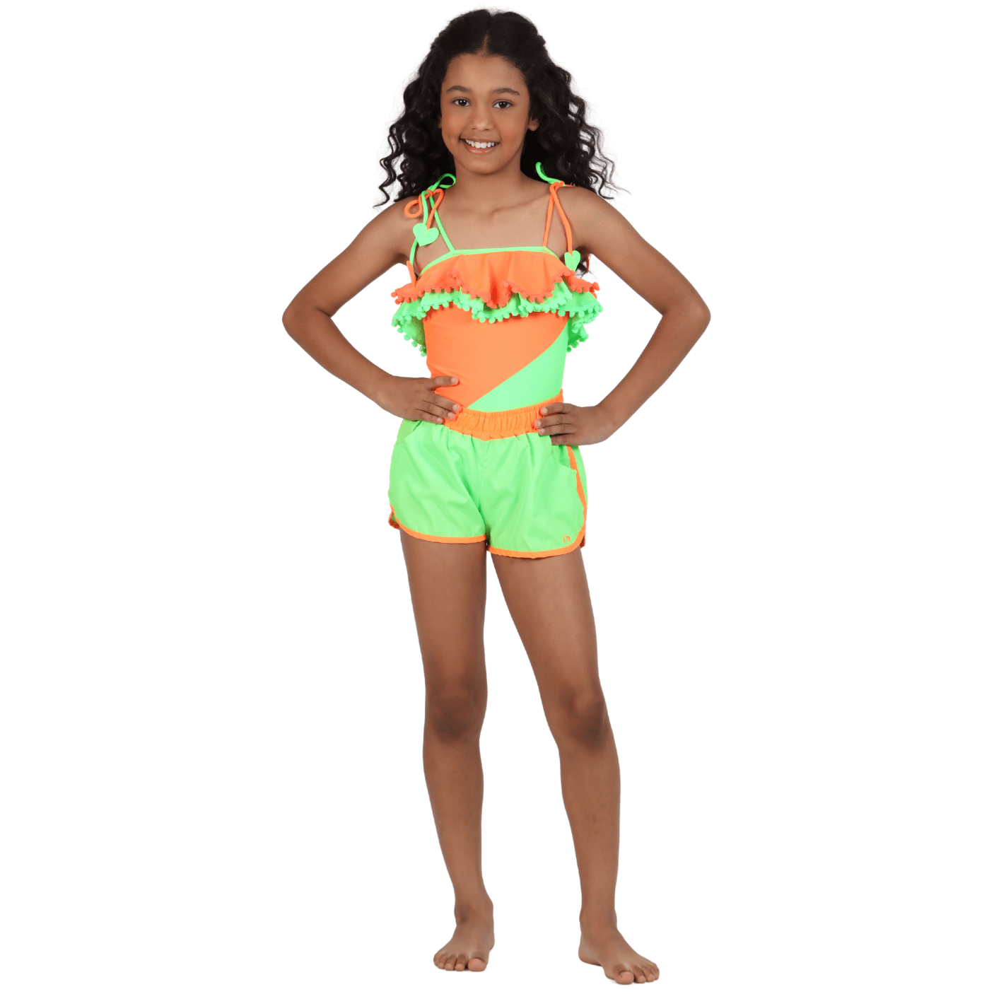 Parte da coleção Siri Kids, o Short Letícia Verde é super versátil e combina facilmente com diversas blusas, bodies e regatinhas da linha, compondo visuais cheios de personalidade e cor.