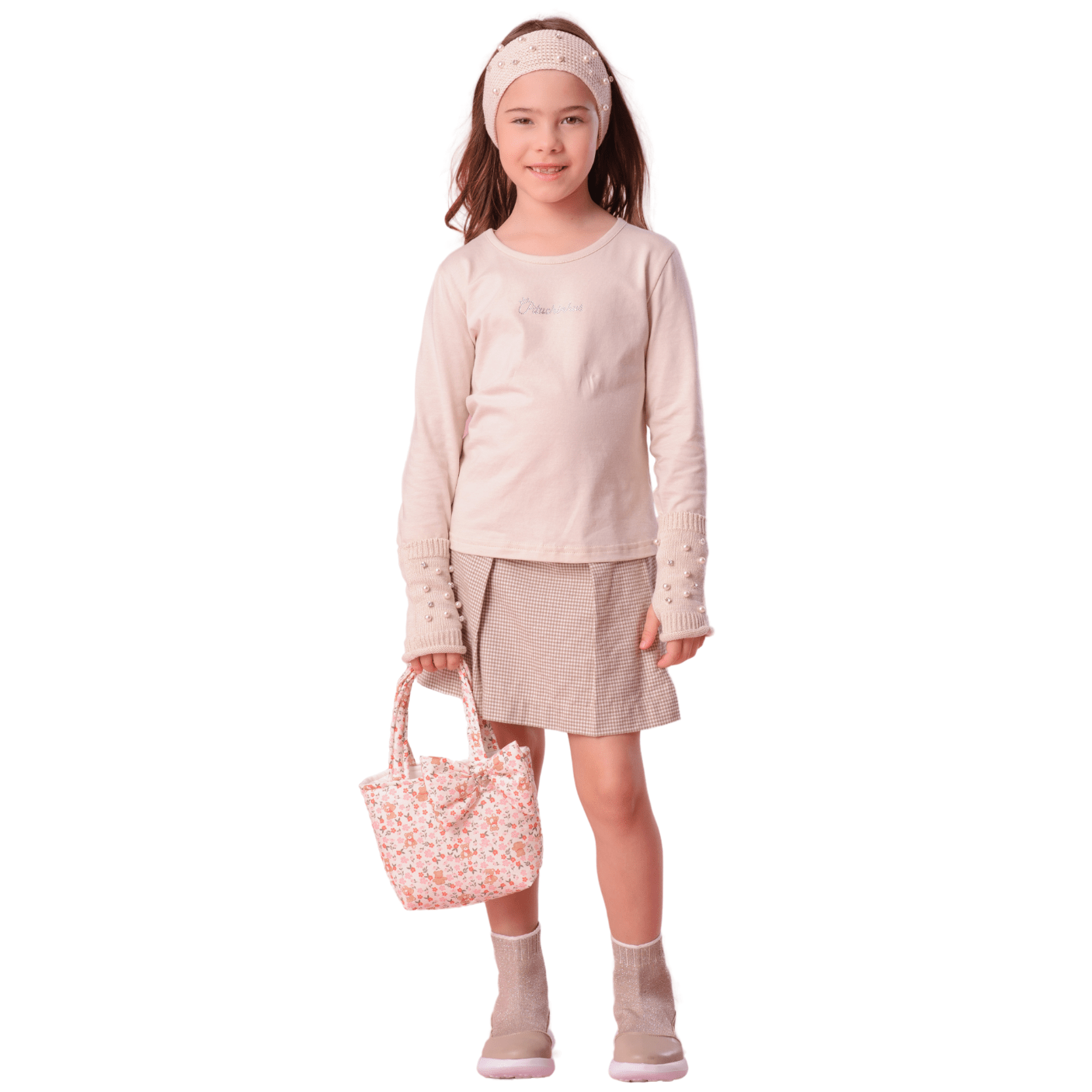 Essa saia short é perfeita para ocasiões especiais ou produções casuais com um toque refinado — uma peça coringa no guarda-roupa infantil.