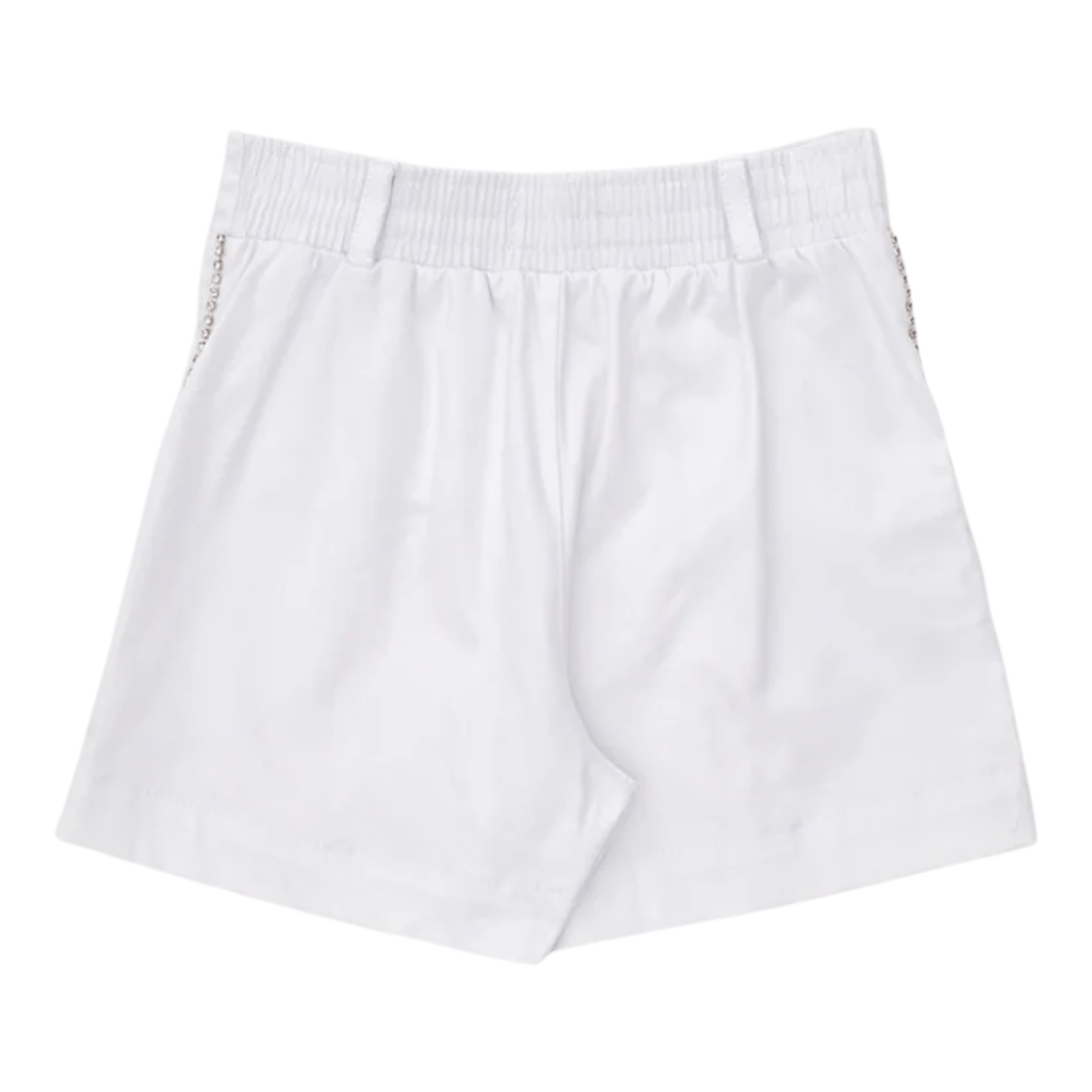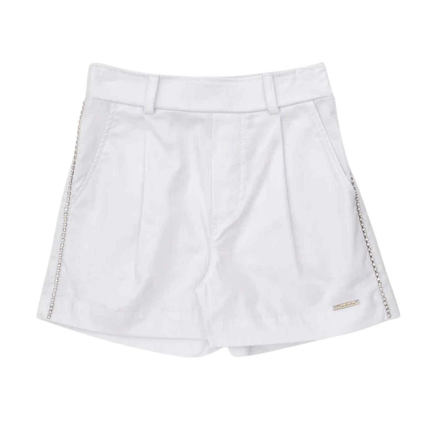 O Short Alfaiataria Cristal Branco Pituchinhus é perfeito para compor looks modernos e delicados, combinando conforto, estilo e brilho na medida certa.