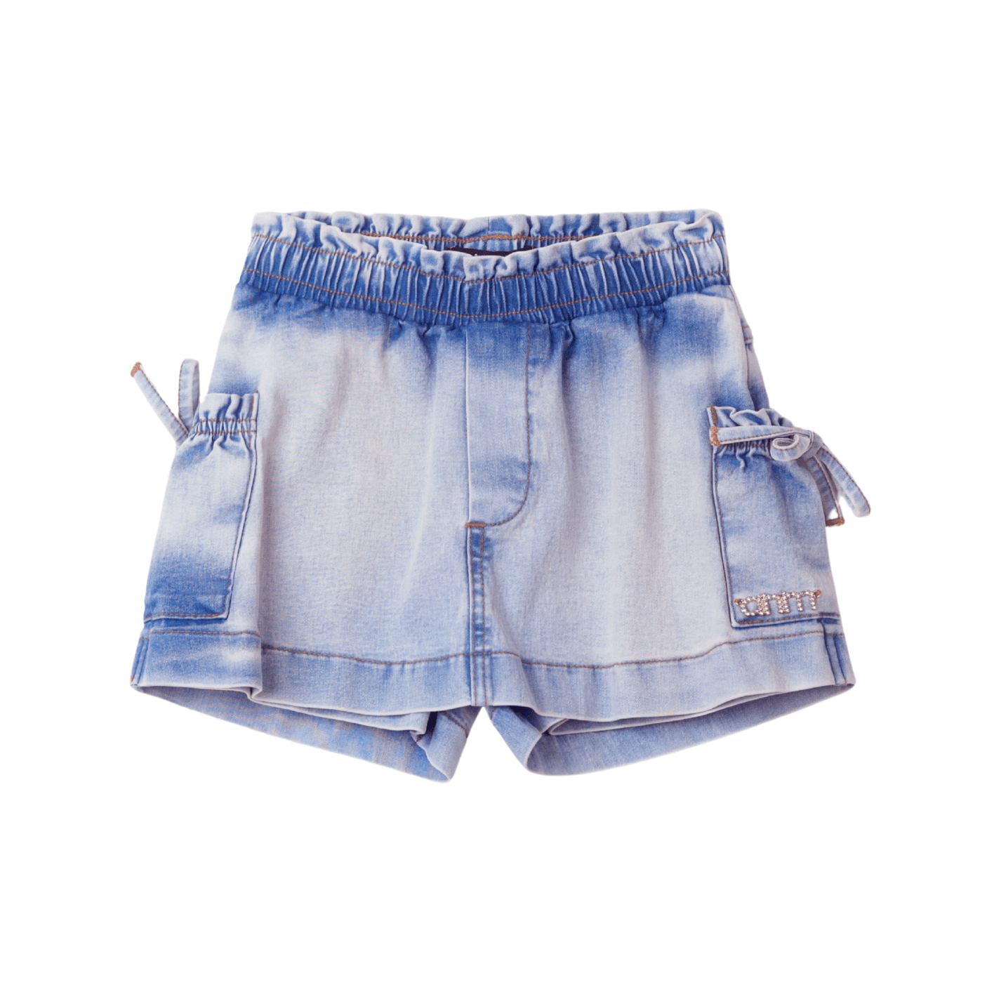 O grande destaque fica por conta da modelagem híbrida: o shorts com sobreposição de saia une a praticidade do short com o charme da saia jeans. Os bolsos estilo cargo adicionam funcionalidade e um toque utilitário moderno, enquanto os detalhes inspirados no universo anime trazem originalidade e um toque divertido ao look.