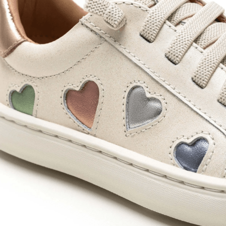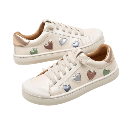 O Tênis Infantil Love 4 All Heart Couro White Dream Tip Toey Joey é a combinação perfeita entre conforto, delicadeza e estilo moderno. Com aplicação lateral de corações coloridos e acabamento em couro legítimo macio, ele transforma qualquer look infantil em uma produção cheia de personalidade.