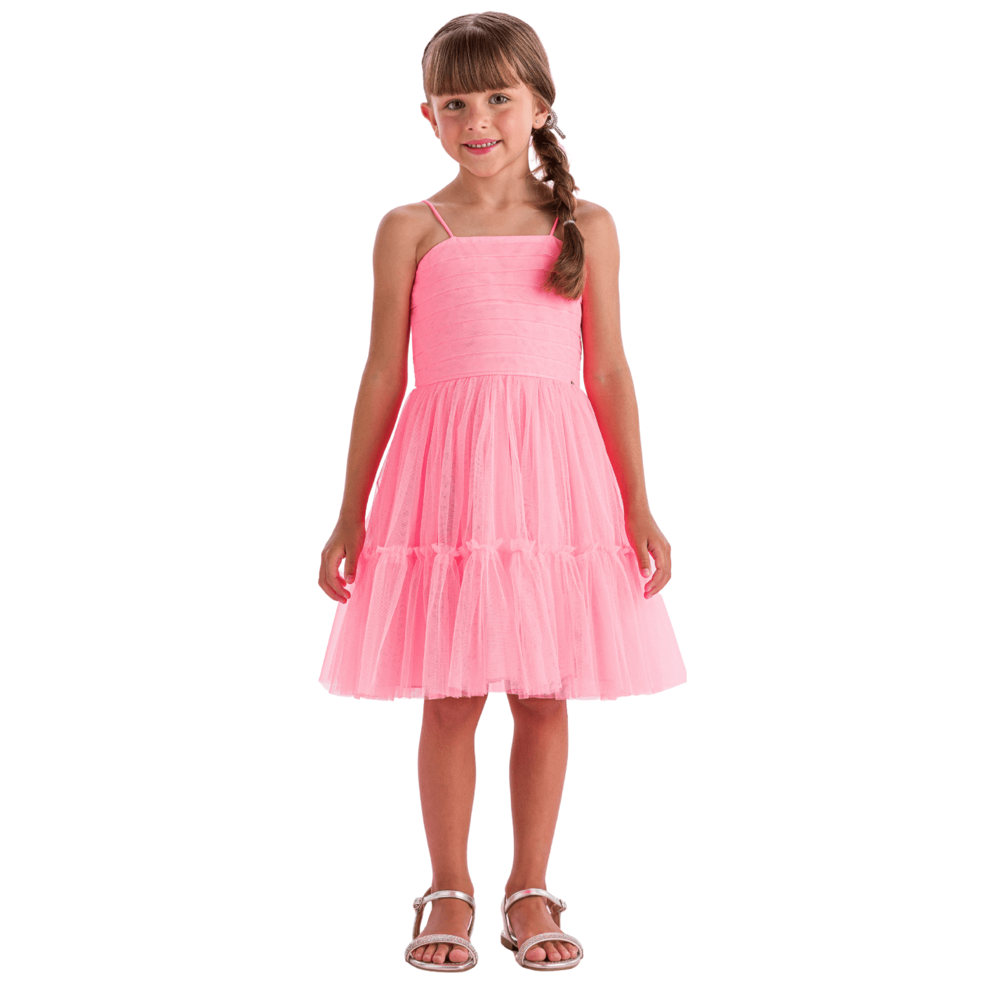 O Vestido Alcinha Tule Rosa Neon Petit Cherie é a escolha perfeita para trazer modernidade, brilho e delicadeza ao visual das pequenas. Confeccionado em tule leve e macio, possui camadas que criam um caimento volumoso e encantador, transmitindo movimento e fluidez a cada passo. Seu tom rosa neon vibrante adiciona um toque fashion e alegre, ideal para ocasiões especiais, festas e momentos de destaque.
